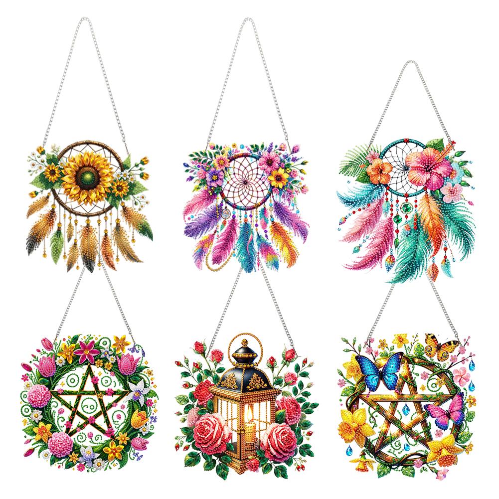 Acrylic Special Shape Flowers Light 5D DIY Diamond Painting Dots Pendant Rhinestone Diamond Art Pendants for Garden Window Decor — купить товар онлайн с бесплатной доставкой по всему миру!
