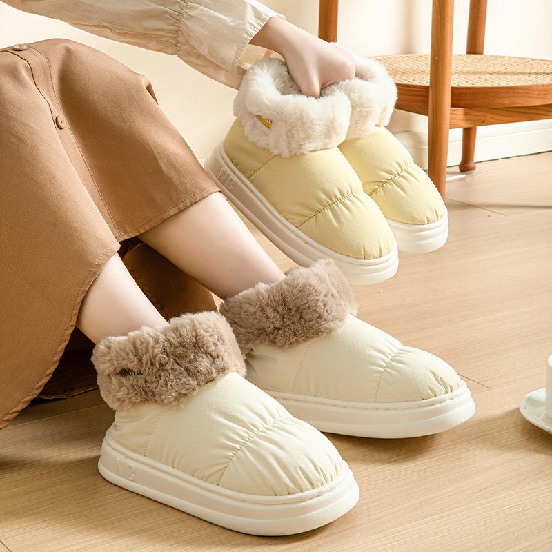 Женские хлопковые тапочки на толстой подошве, новая зимняя водонепроницаемая верхняя одежда, плюшевые теплые домашние нескользящие зимние ботинки на плоской подошве