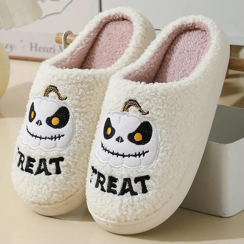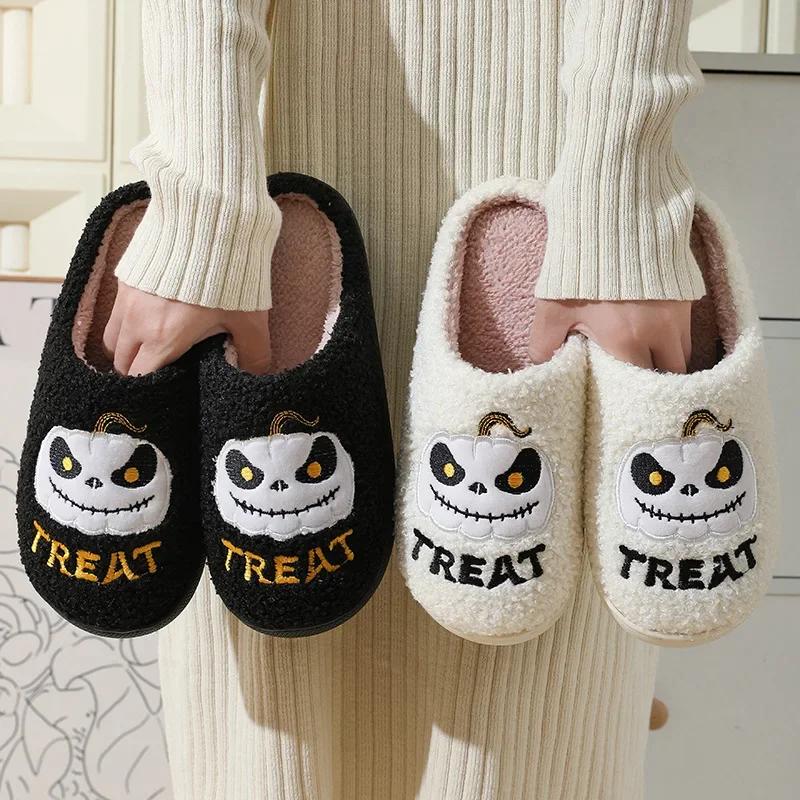 Зимние тапочки для мужчин с рисунком тыквы на Хэллоуин, уютные домашние тапочки, плюшевые тапочки для дома, женские нескользящие тапочки для гостиной