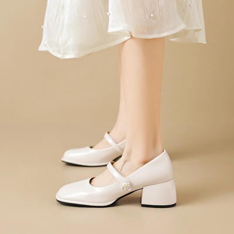 Весенние туфли на высоком каблуке 2024 года, новые женские модные туфли Мэри Джейн на толстом каблуке Zapatos De Mujer, женские туфли с квадратным носком и мелким узором