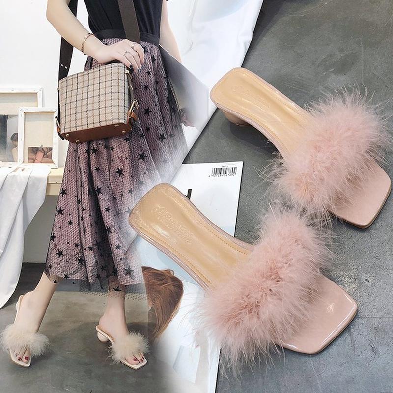 Сотня тапочек женские волосатые 2019 трансграничные новые инопланетные и женские крутые туфли для женщин со средней и квадратной головой fgb5