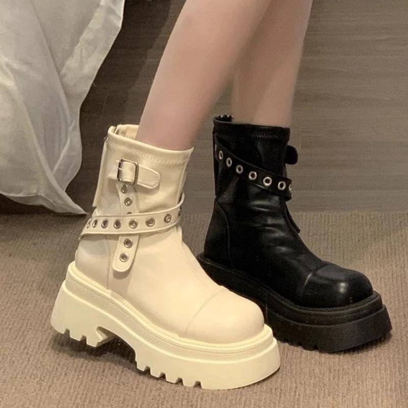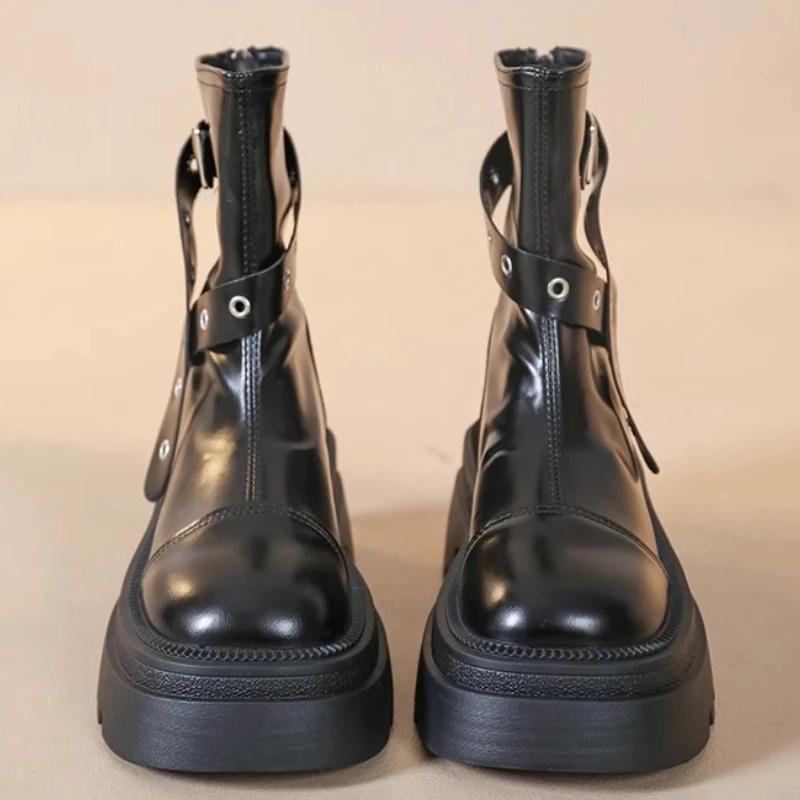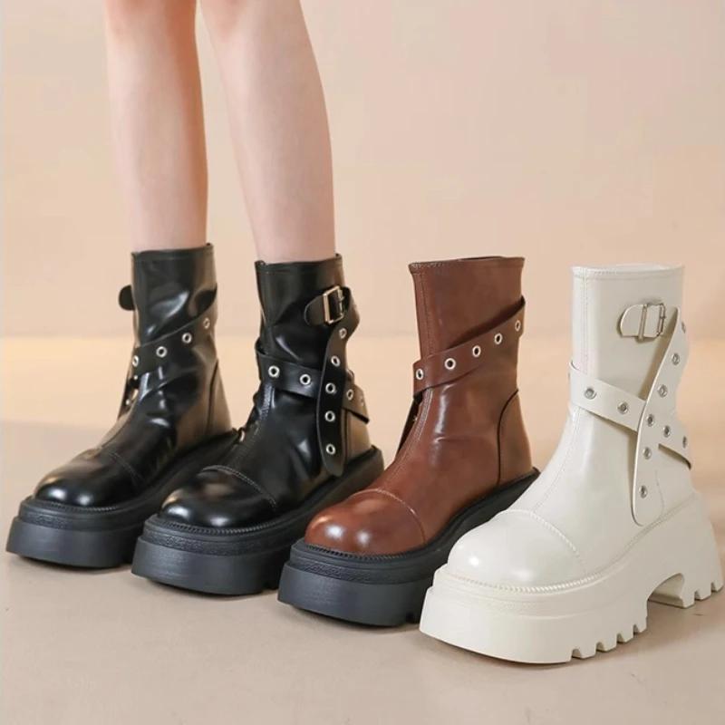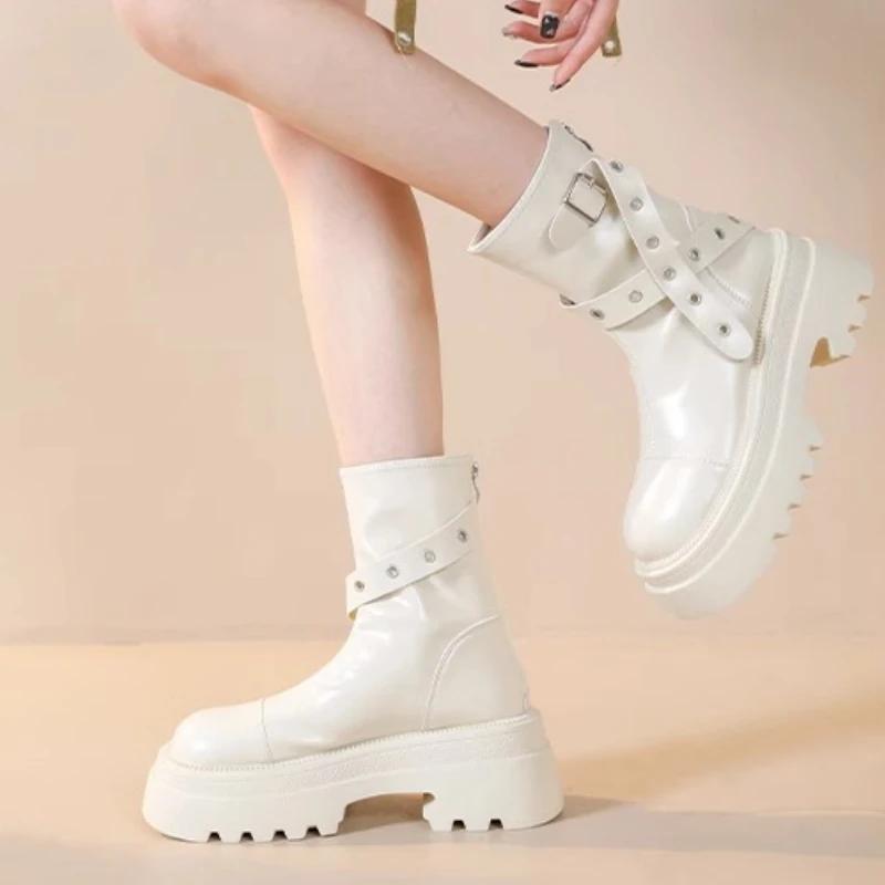 Обувь для женщин 2024 года, высококачественные женские ботинки на молнии, осенние, с круглым носком, однотонные, короткие, на платформе, с толстым каблуком, модные ботинки