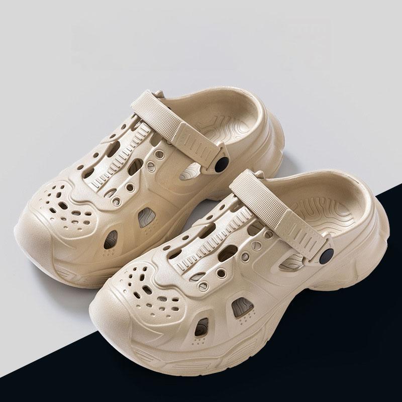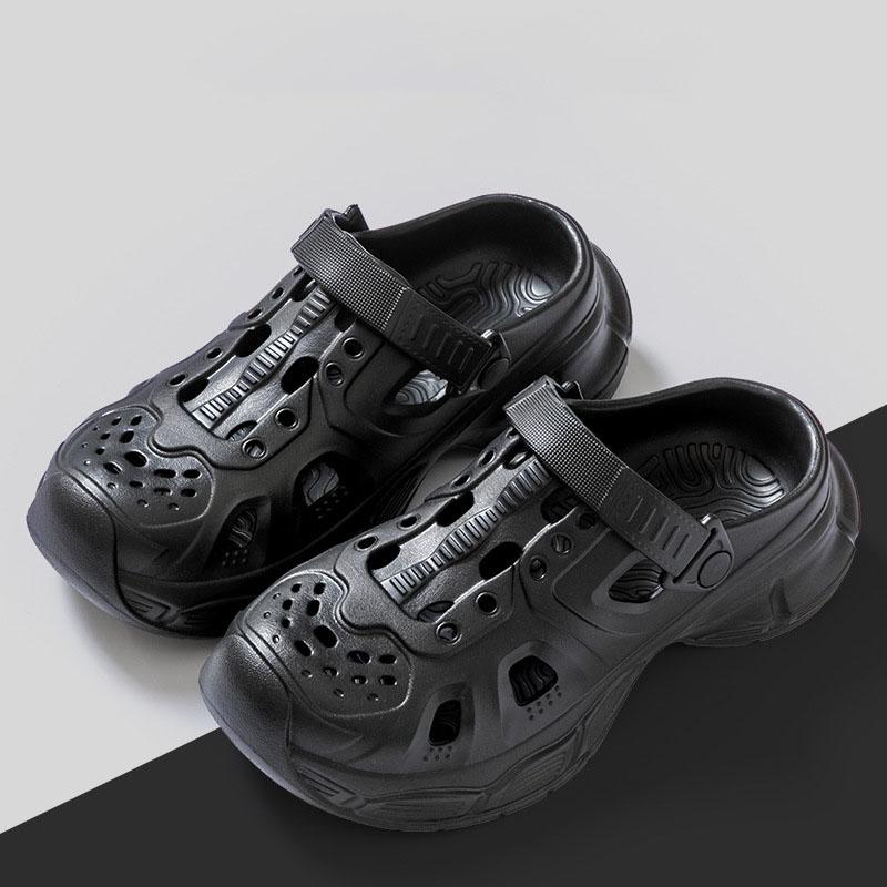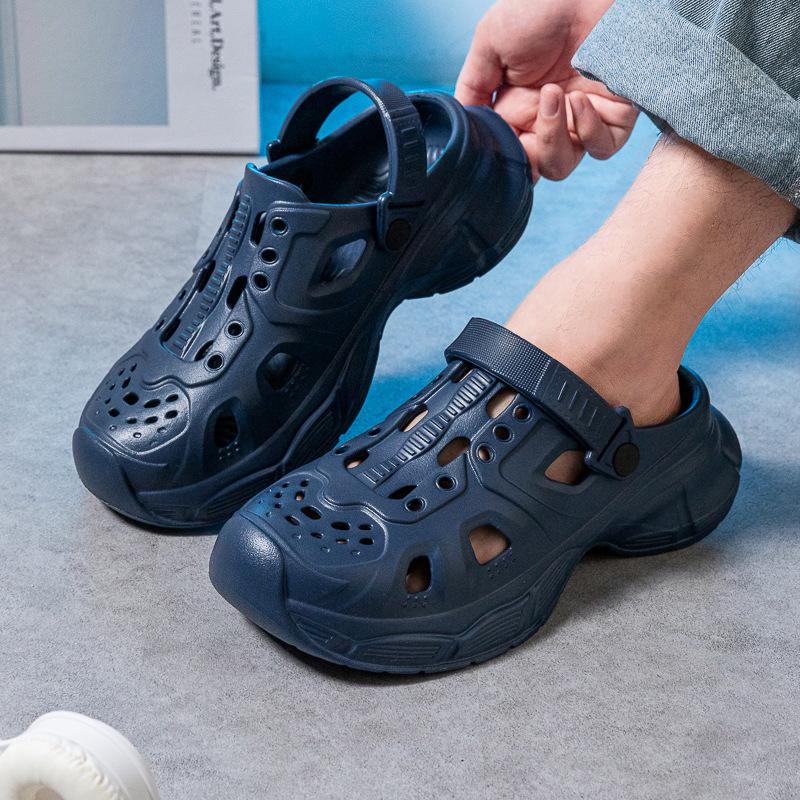 Мужские туфли Hole для летней носки на открытом воздухе, нескользящая толстая подошва, модные офисные туфли для вождения, пляжные сандалии с закрытым носком