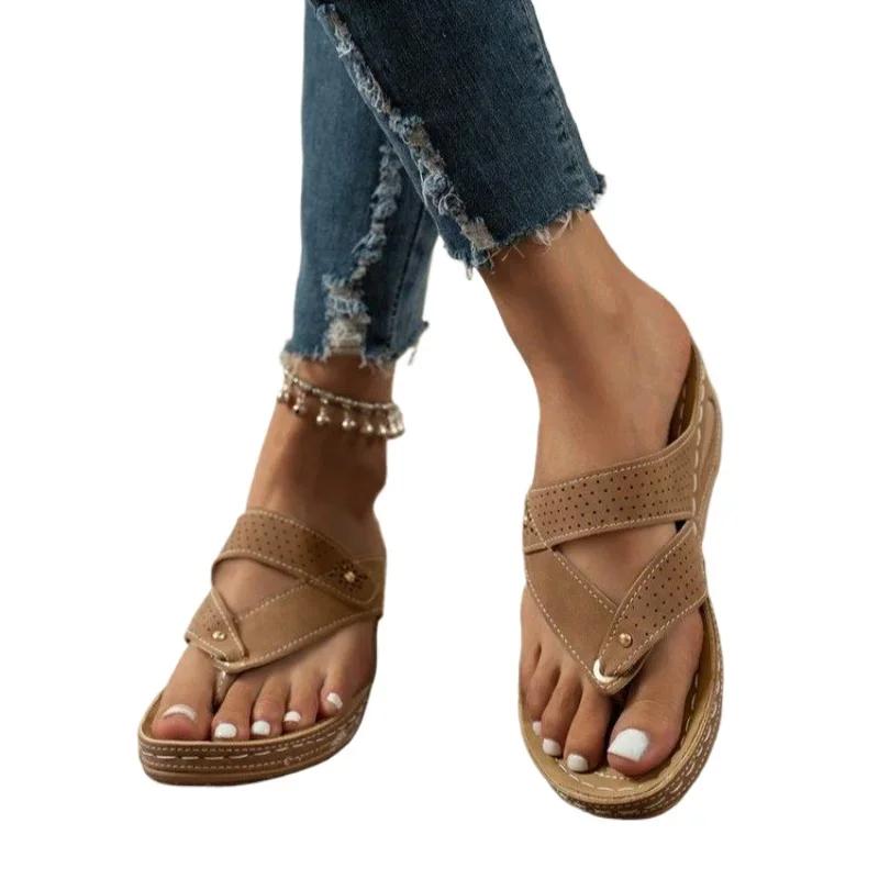 SyfIyno Женские клиновидные ретро шлепанцы на платформе с зажимом для пальца, женские летние нескользящие шлепанцы, женские уличные пляжные шлепанцы, большой размер 42