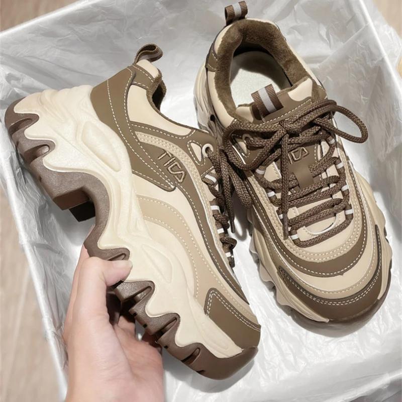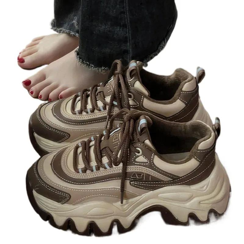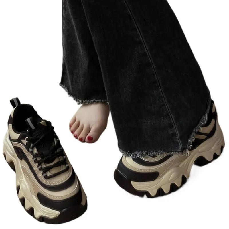 Кроссовки женские повседневные белые туфли 8 см модные увеличивающие рост толстые подошвы пружинная платформа кожаные женские массивные кроссовки 2024