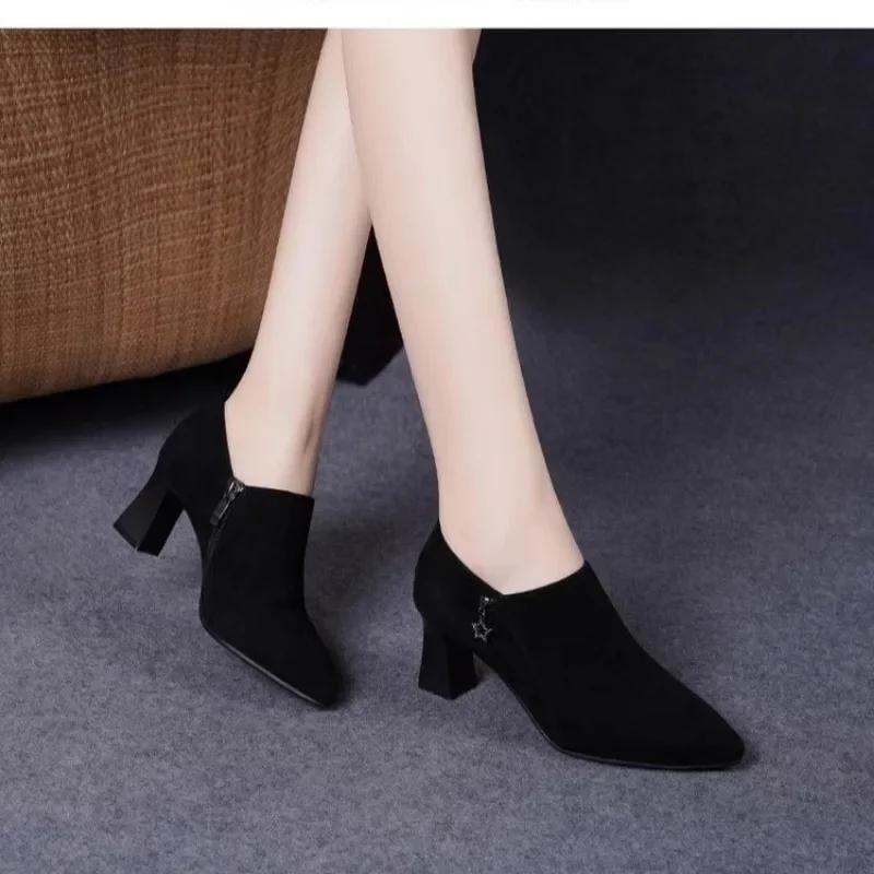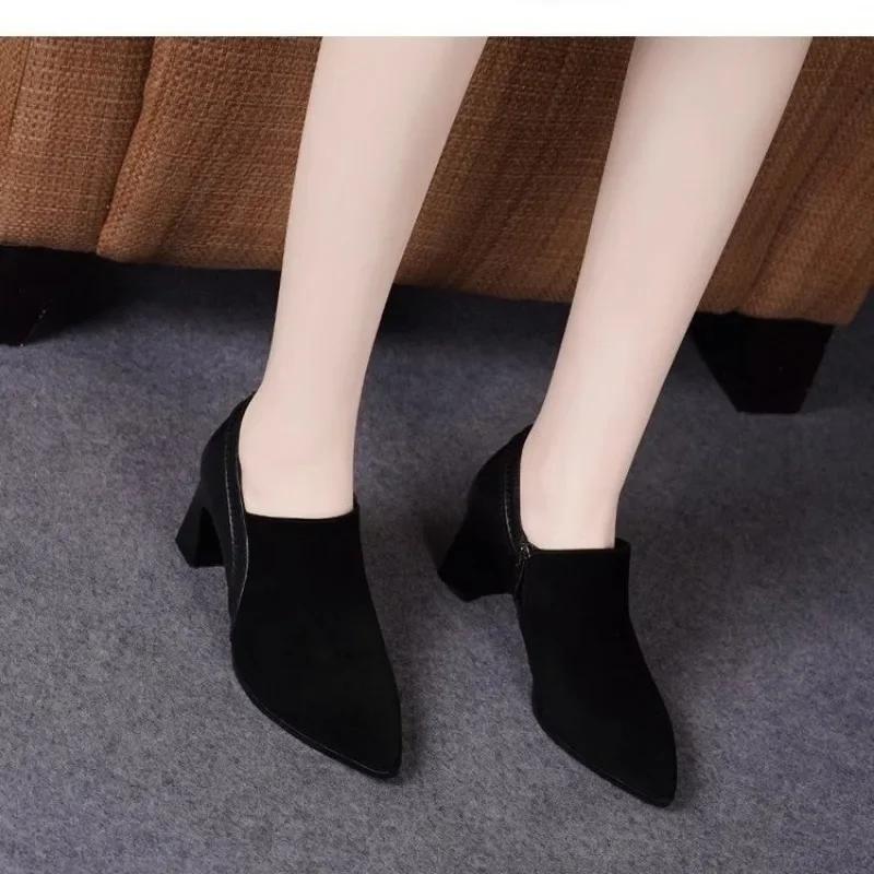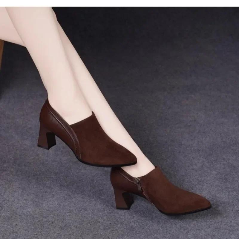2024 Модная женская обувь с боковой молнией, женские туфли на высоком каблуке, горячая распродажа, офисные и карьерные туфли-лодочки, женские туфли с острым носком и толстым каблуком