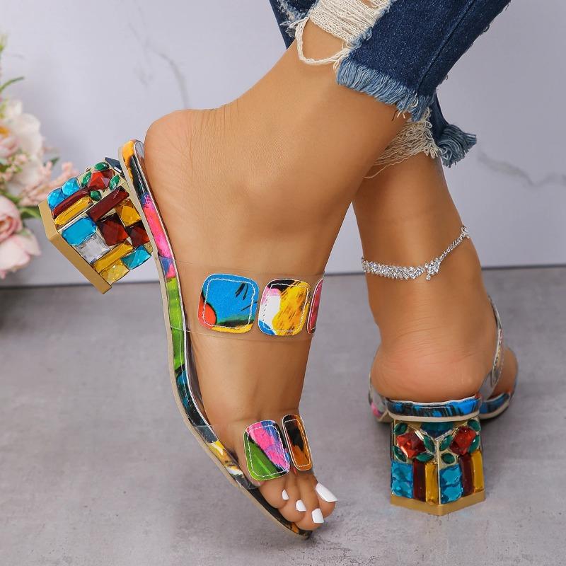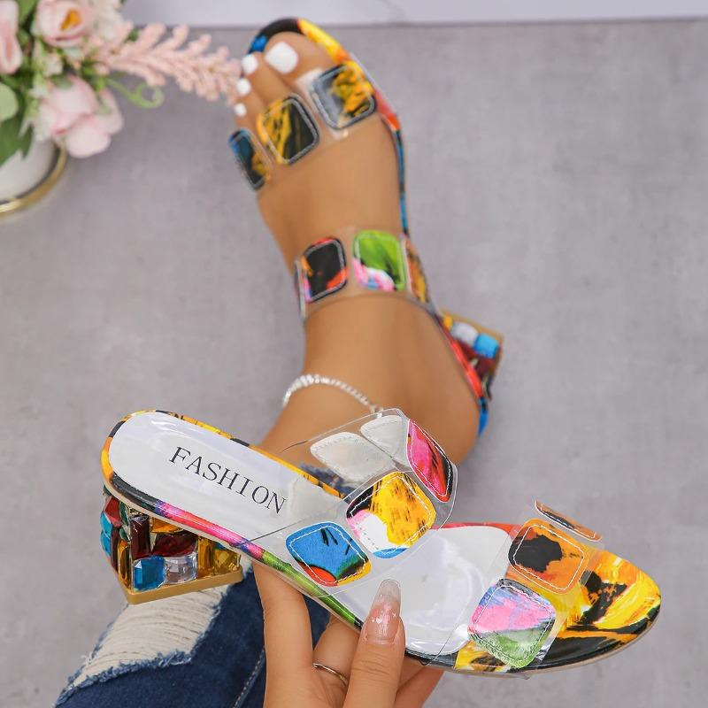 Женские тапочки 2024 Летние босоножки на квадратном каблуке с открытым носком и несколькими клиньями Тапочки Обувь для женщин Шлепанцы Мода Zapatos De Mujer