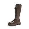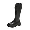 Женские сапоги, зимние новые британские высокие рыцарские сапоги из искусственной кожи, однотонные, с толстыми ремешками на подошве, модные женские туфли в стиле панк до колена