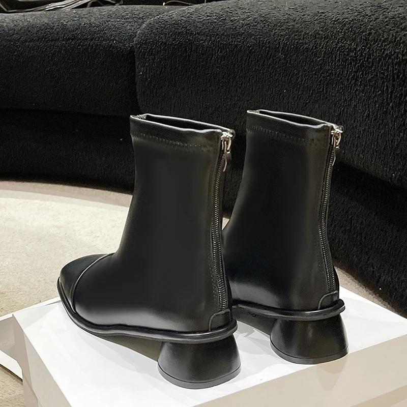 Женские ботинки челси с квадратным носком и толстым каблуком, осень-зима, новые ботинки до середины голени с молнией сзади для женщин, женская обувь на каблуке