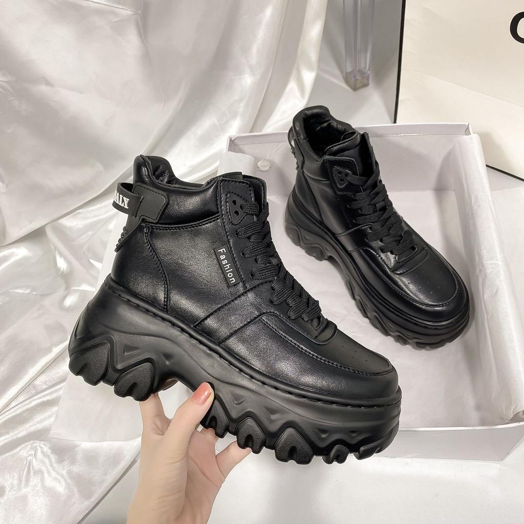 Женские кроссовки Зимняя женская обувь на платформе Кроссовки на толстой подошве Увеличивающие рост женские ботинки Толстая подошва для женщин Весна Осень
