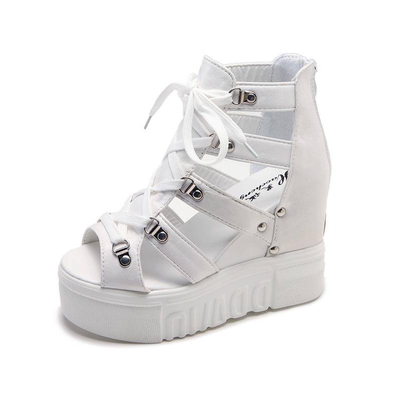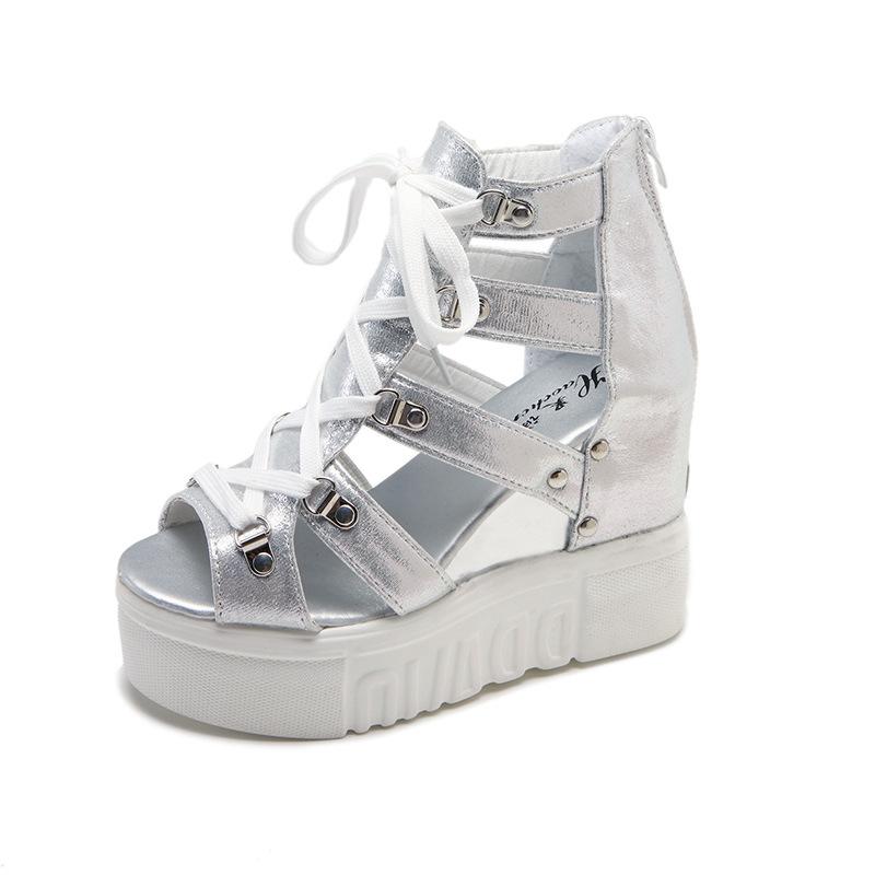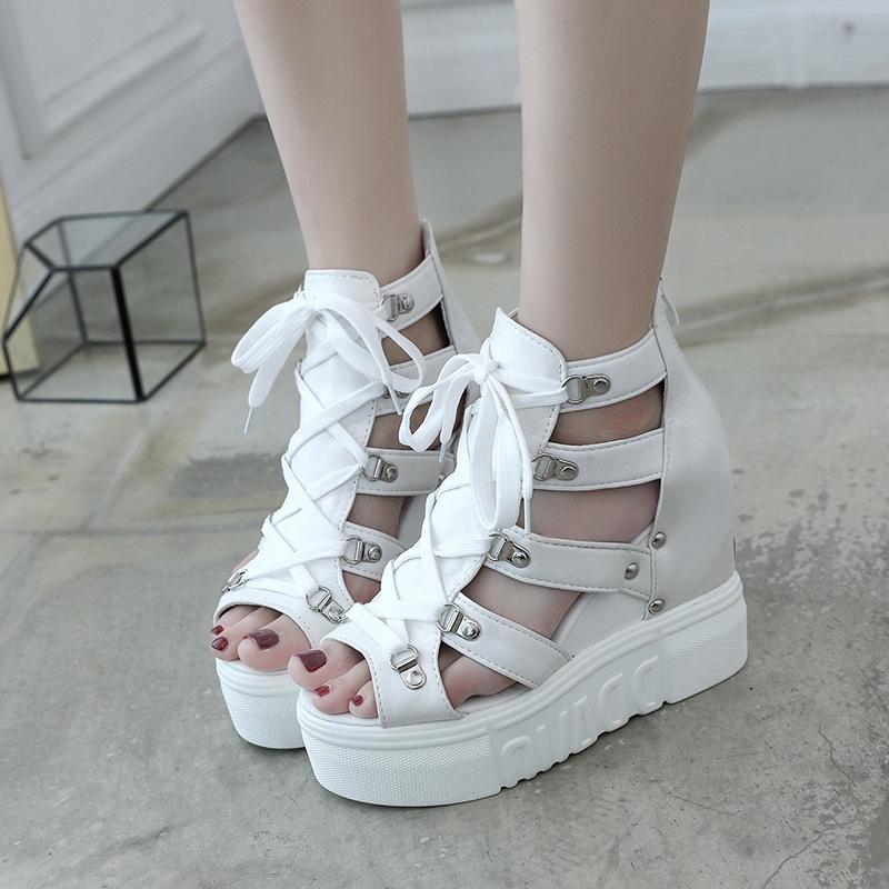 Горячая печать Досуг танкетка женская обувь 2024 Летняя обувь женские сандалии платформа шнурки высокие каблуки повседневная обувь Womanxf45