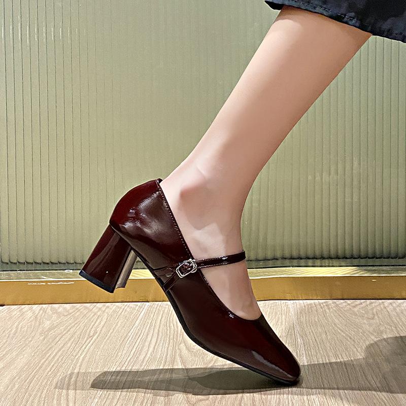 Осенние туфли на каблуках для женщин в стиле ретро с квадратным носком и ремешком на высоком каблуке Туфли Мэри Джейн 2025 Весна Толстый каблук Небольшой носок Одинарные туфли