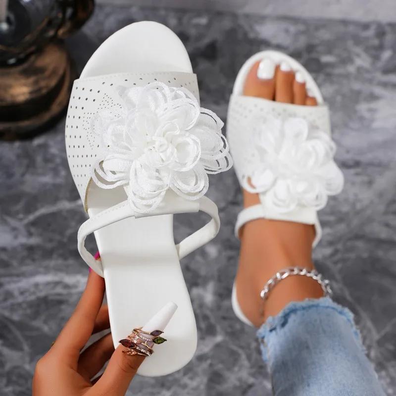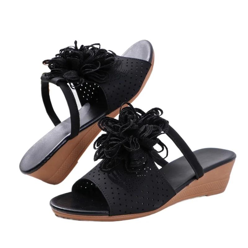 Женская обувь 2024 года, горячая распродажа, женские тапочки больших размеров, модные повседневные тапочки с цветочным принтом, новые женские тапочки на танкетке с открытым носком Zapatos