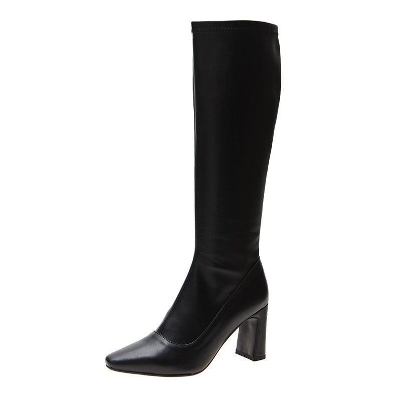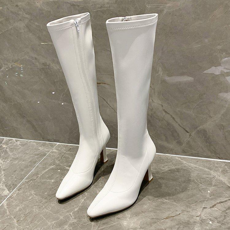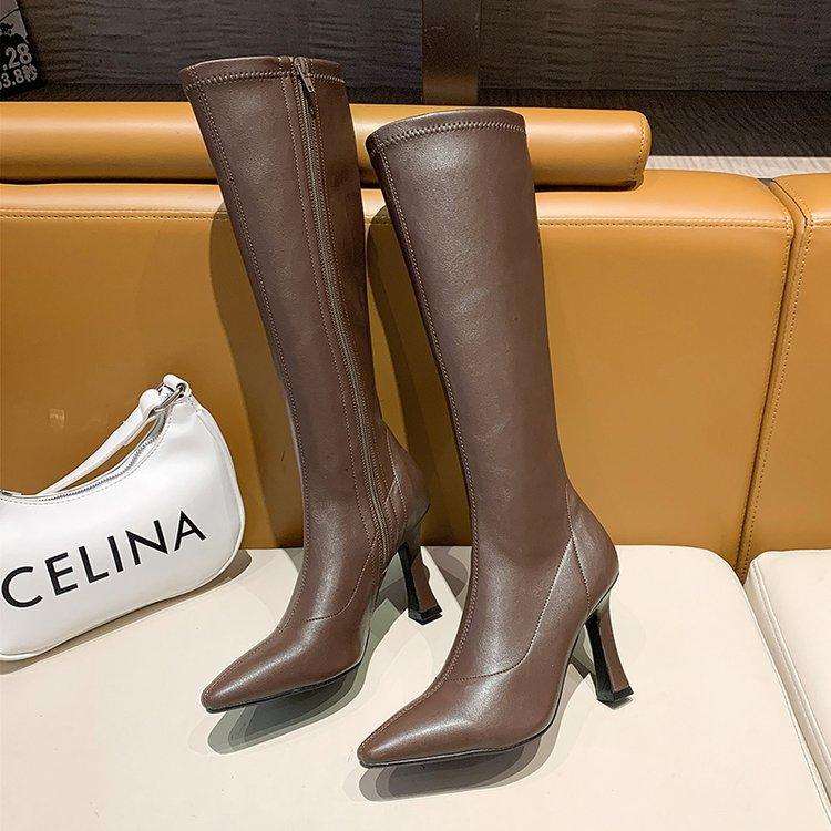 Классические женские новые заостренные носки на высоком каблуке длинные сапоги осень 2024 года женские сапоги до колена с боковой молнией из искусственной кожи женские сапоги