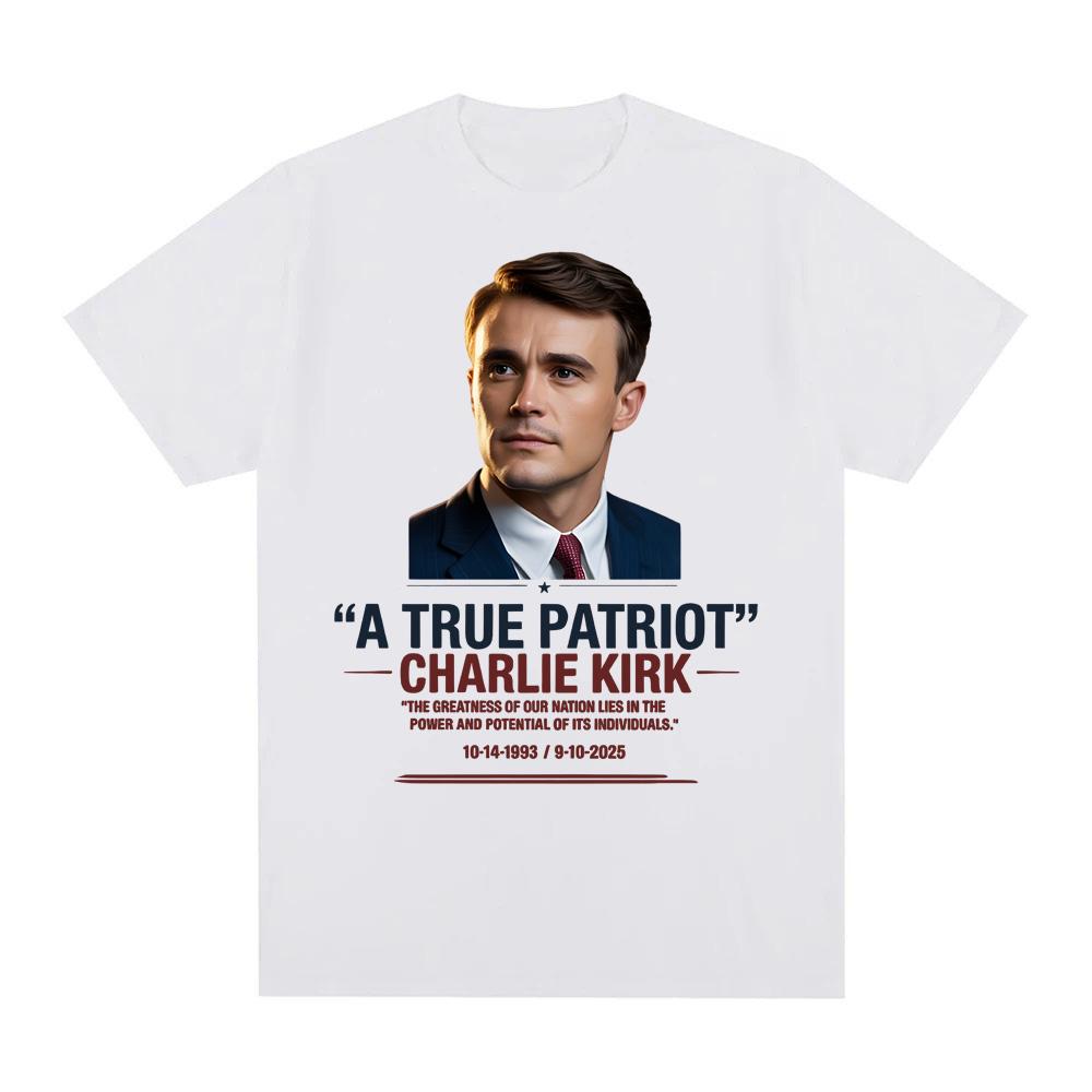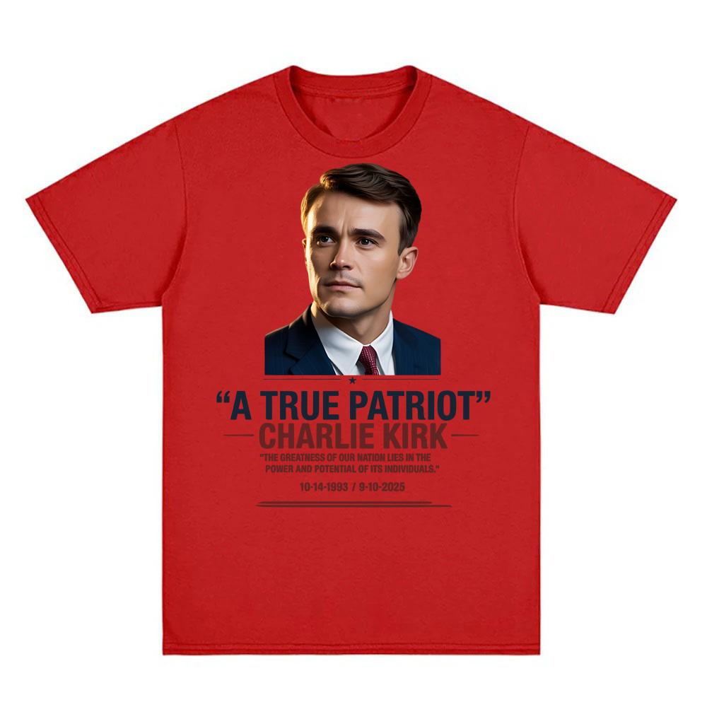 """ИСТИННЫЙ ПАТРИОТ" ЧАРЛИ КИРК Футболка Унисекс Летняя Футболка Рукав Женская/мужская Повседневная 100%хлопок Футболка Круглый вырез Удобные Футболки"""