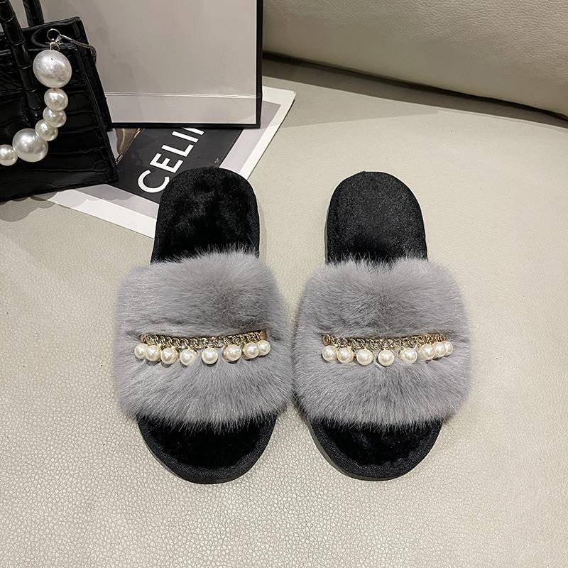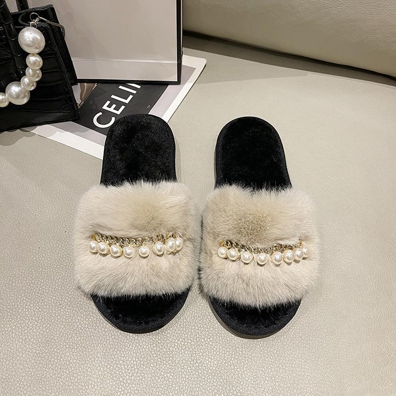 Зимние женские домашние пушистые тапочки 2024 года, новые нескользящие повседневные домашние тапочки с цепочкой, теплые туфли на плоской подошве, шлепанцы, однотонные