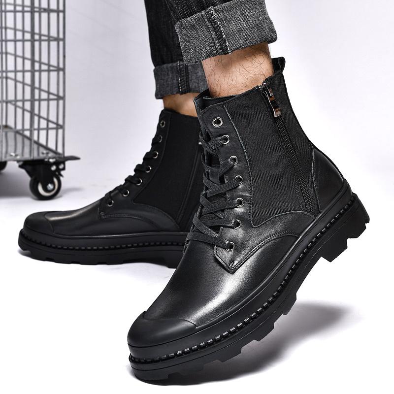 Мужские повседневные ботинки, классические черные уличные ботинки, высококачественные ботинки из натуральной кожи для мужчин, мотоциклетные ботинки с толстой подошвой, мужские ботинки — купить товар онлайн с бесплатной доставкой по всему миру!