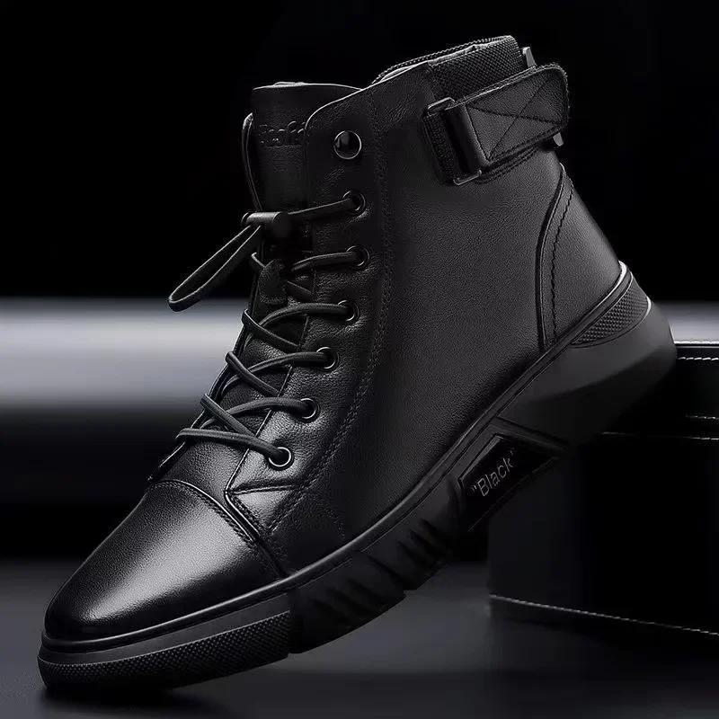 2024 Мужские мотоциклетные ботинки Удобные ботинки на платформе Мужские уличные высокие кожаные ботинки Модная водонепроницаемая мужская обувь