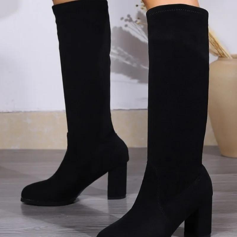 2024 Горячая Распродажа Женской обуви, женские сапоги с рукавами, зимние, с круглым носком, плюшевые, флисовые, для тепла, высокие, на толстом каблуке, модные сапоги