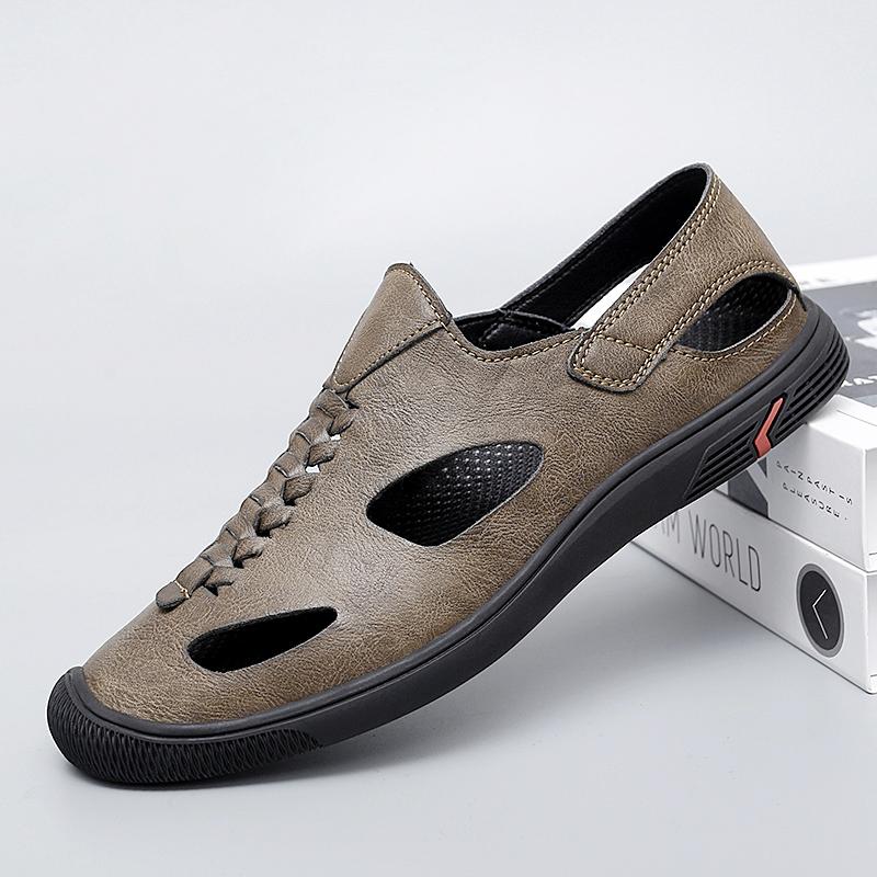 Мужские повседневные сандалии в британском стиле, дизайнерские, с перфорацией, с круглым носком, противоскользящие, легкие, модные, дышащие, летние — купить товар онлайн с бесплатной доставкой по всему миру!
