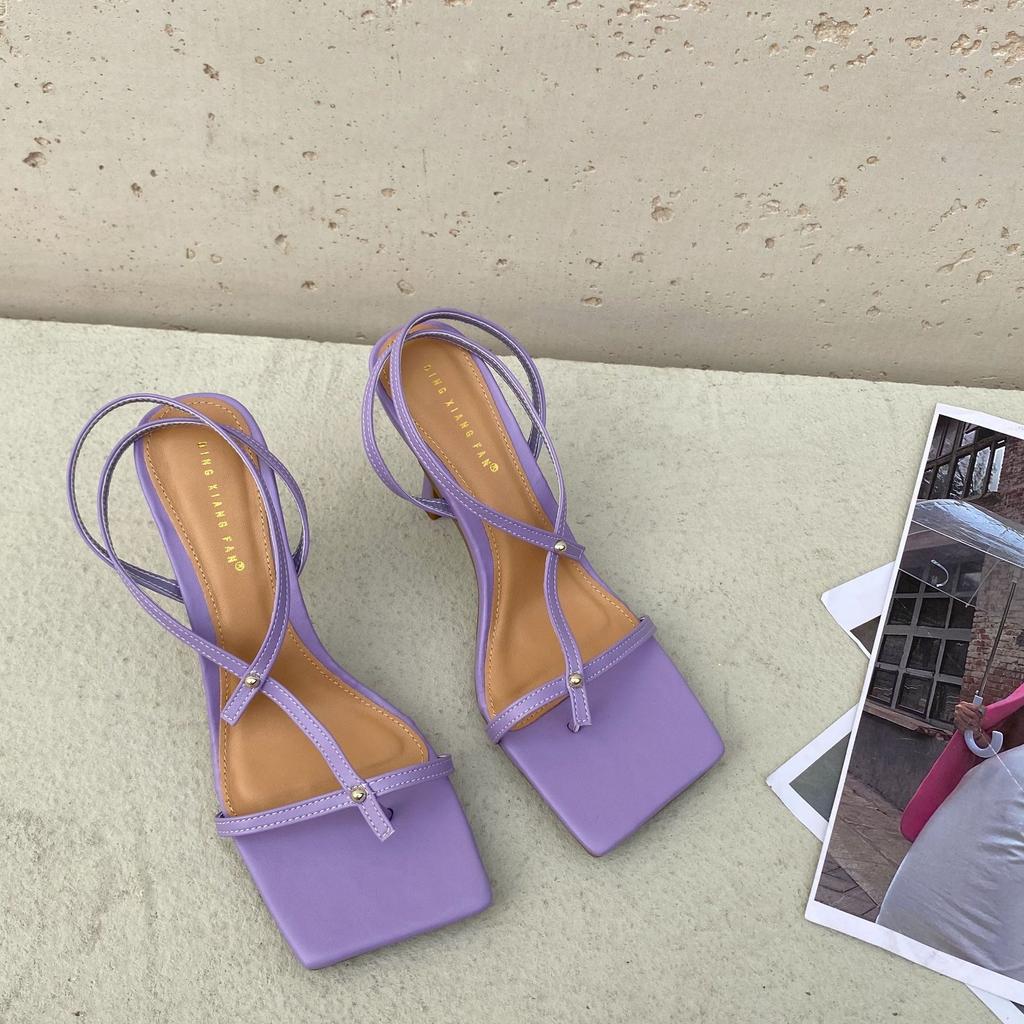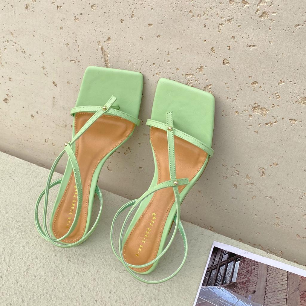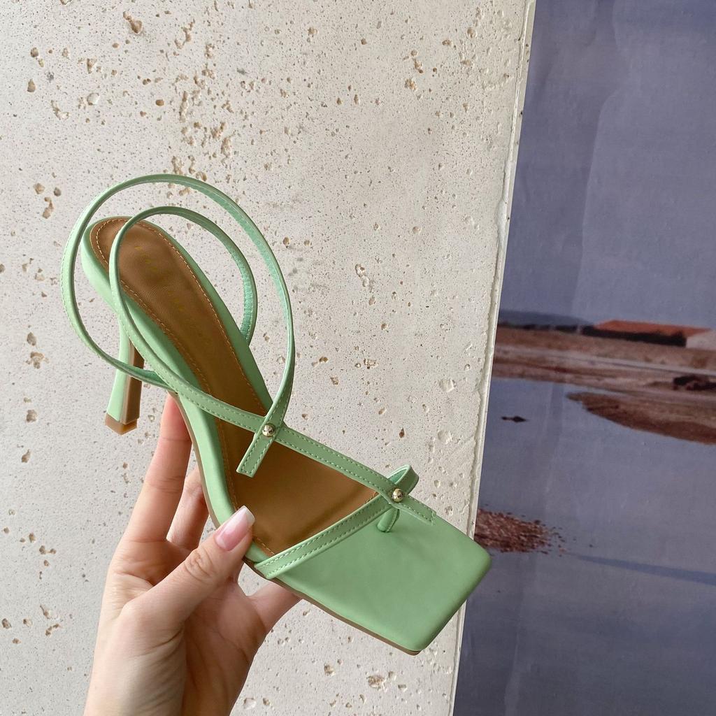 Новые брендовые сандалии-гладиаторы на тонком высоком каблуке, туфли-лодочки с узким ремешком и квадратным носком, с застежкой-липучкой, сер76