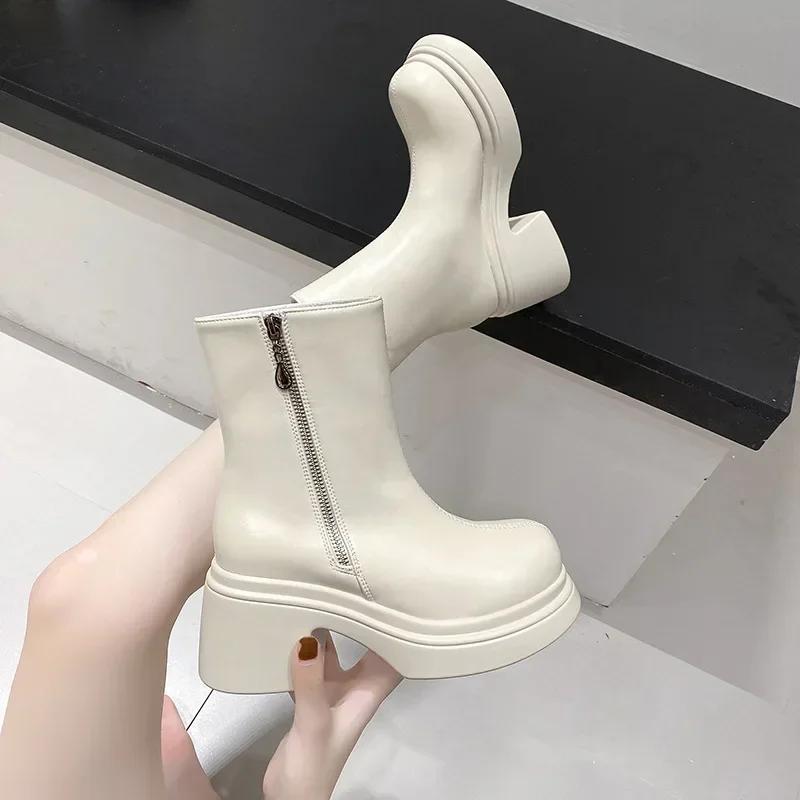 Женские сапоги Rivet Knight Boots с острым носком, высокие сапоги Chelsea, фирменные зимние новые сапоги на молнии для мотоциклистов, походные Mujer Zapatos