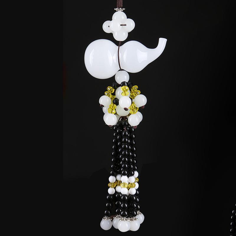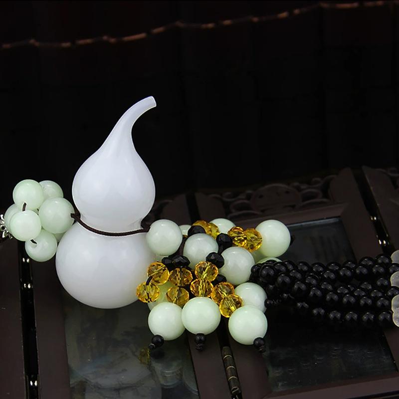 Подвеска на зеркало заднего вида в виде тыквы из белого нефрита, флакон для духов, украшение для автомобиля 2-в-1, подвесные украшения для автомобиля, счастливое украшение