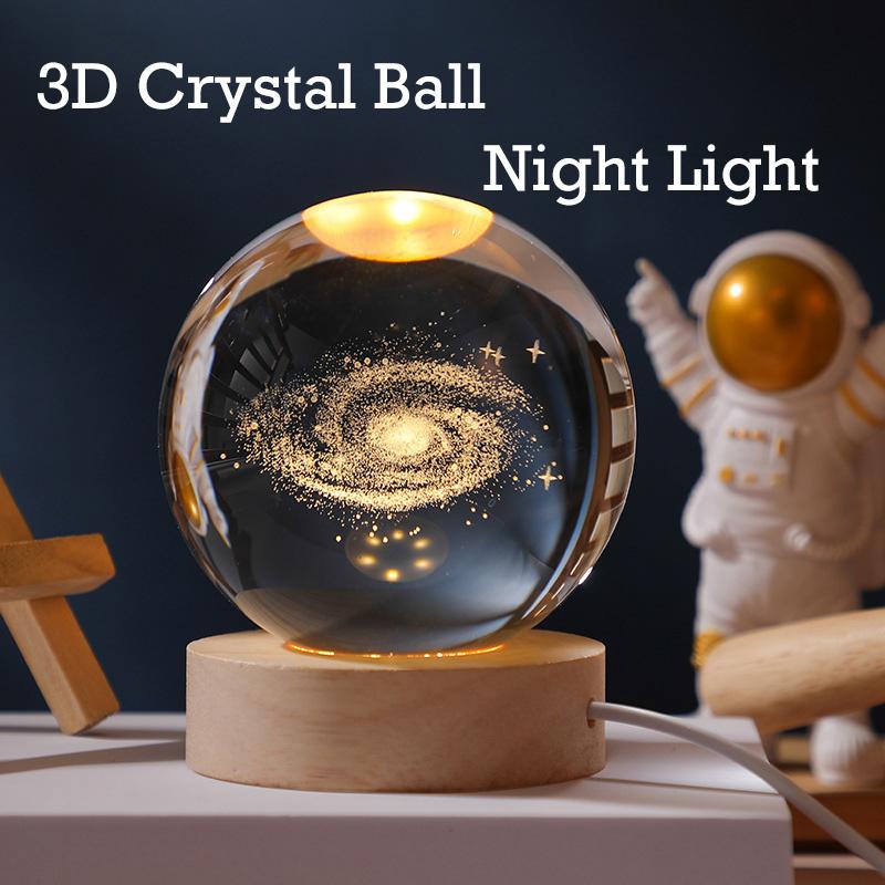 3D Хрустальный шар с подставкой USB зарядка Планетарная Галактика Прикроватное украшение Креативное украшение для стола Детские рождественские подарки