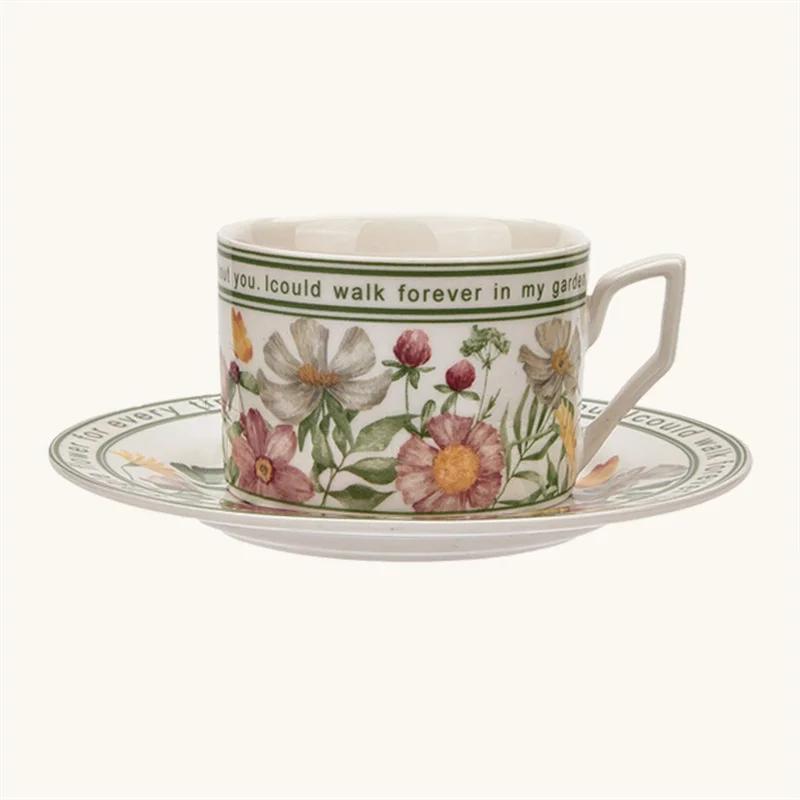 Новая французская ретро керамическая кружка 350 мл изысканная цветочная кофейная чашка с блюдцем послеобеденная чайная чашка с камелией романтический подарок чашка для воды