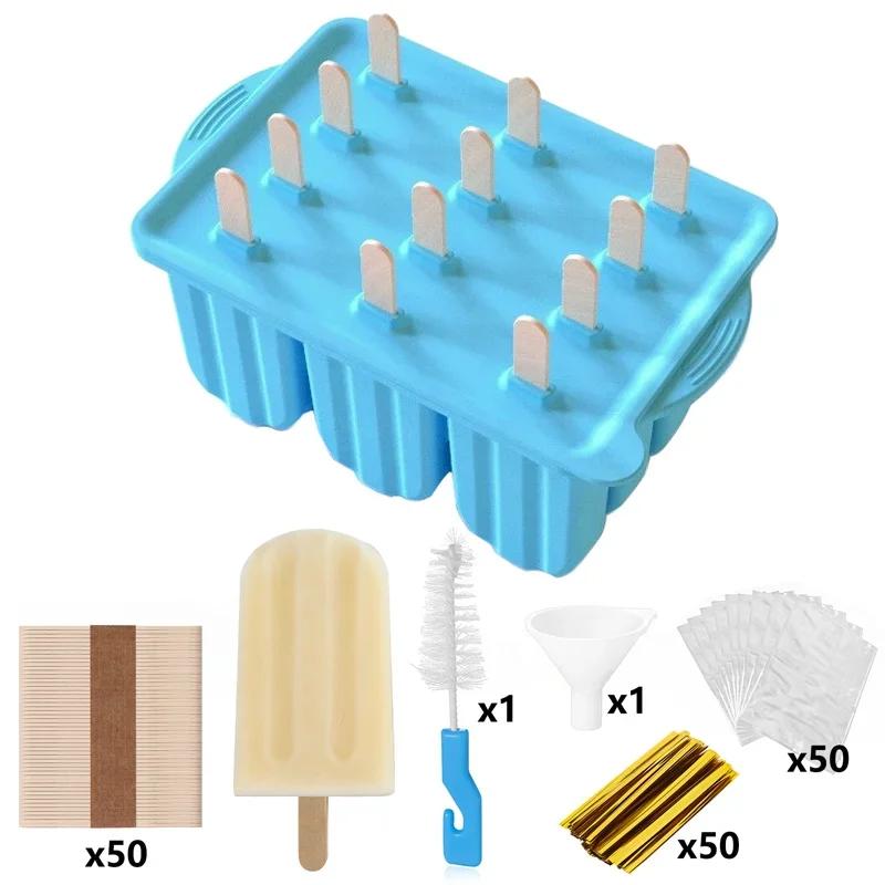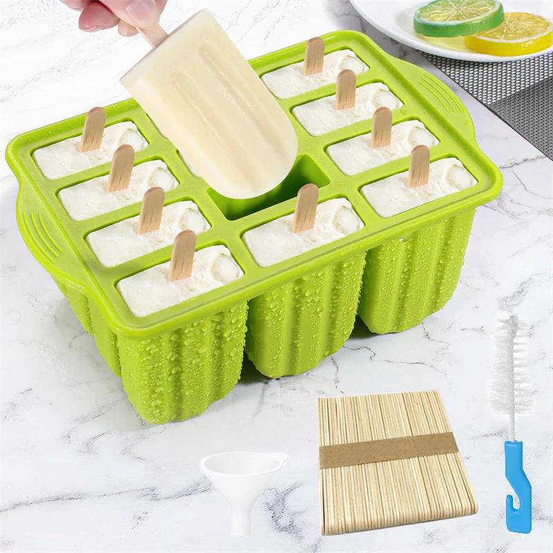 Формы для летнего мороженого на 12 ячеек из пищевого силикона, инструменты для приготовления мороженого своими руками, с деревянными палочками, легко извлекаемые, форма для льда для мороженого