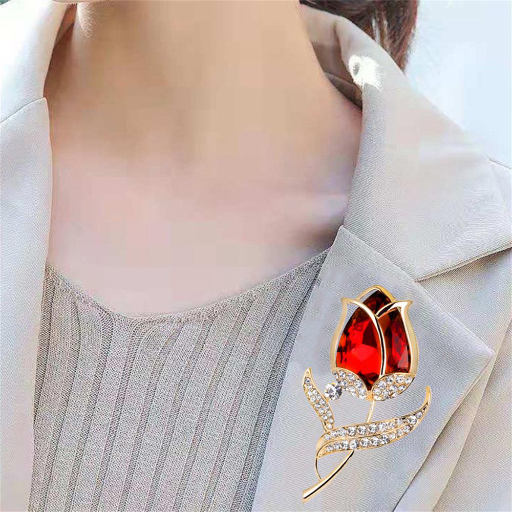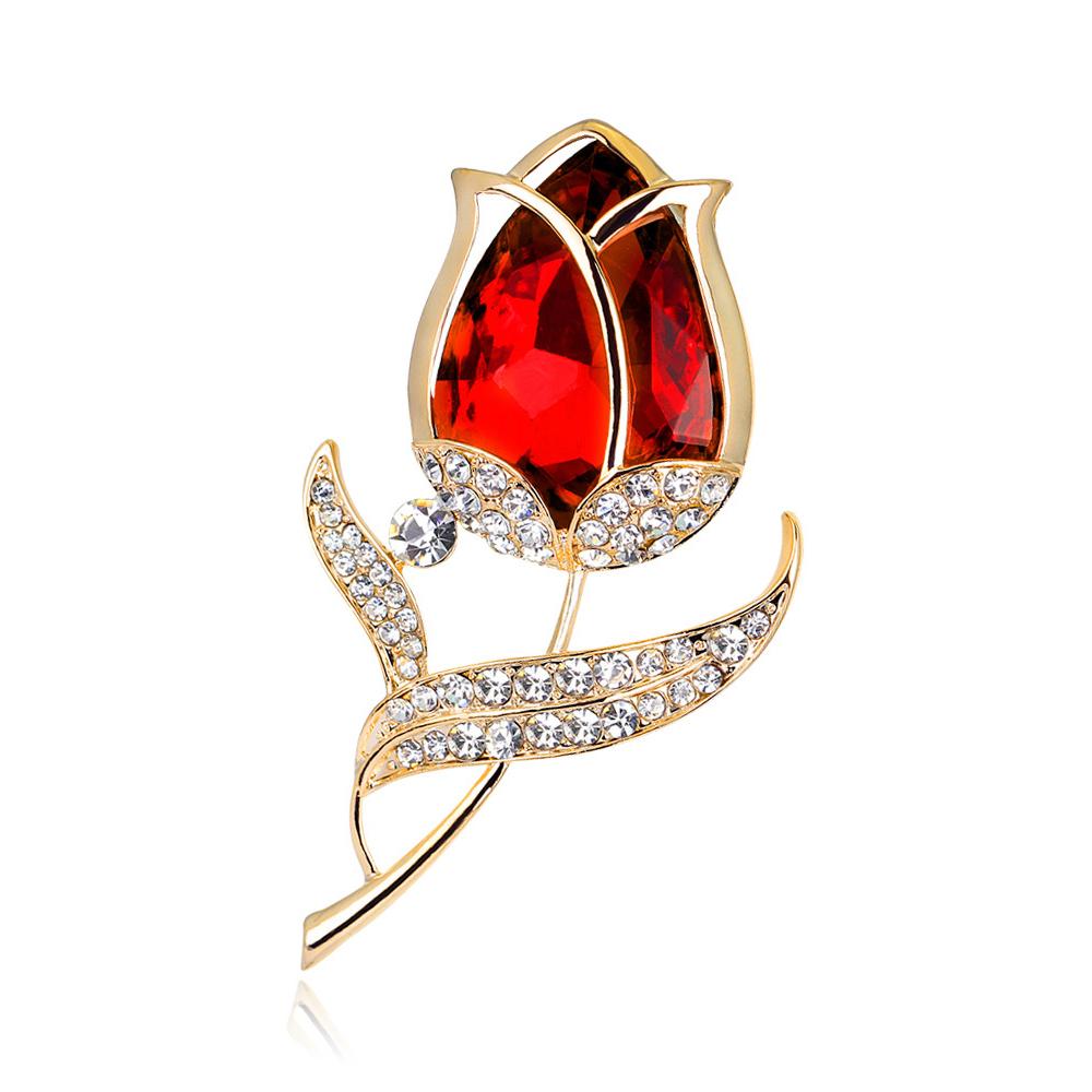 1 шт. Стильная цветочная брошь Легкая роскошь Шелк и атлас Тюльпаны Взрыв Кристалл от Австрийского Для женщины Свадебные украшения Одежда