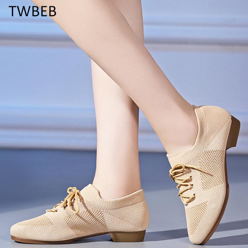 Женская обувь для латиноамериканских танцев на низком каблуке, обувь для бальных танцев в сетку, обувь для учителей, танго, сальса, румба, современная джазовая обувь для женщин