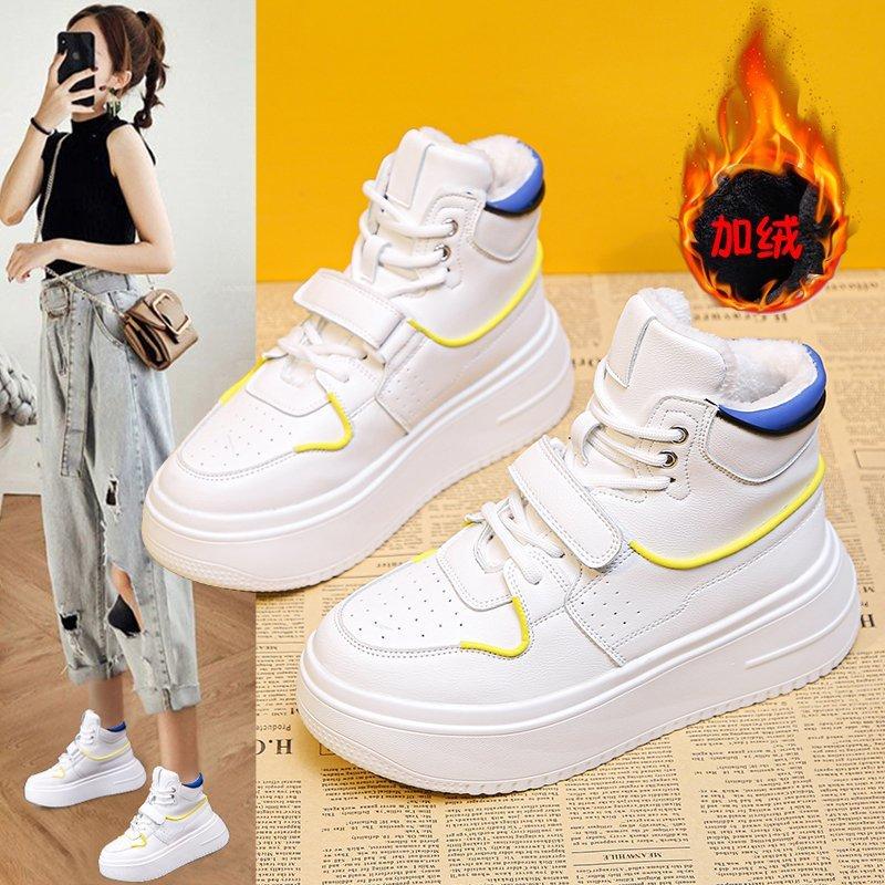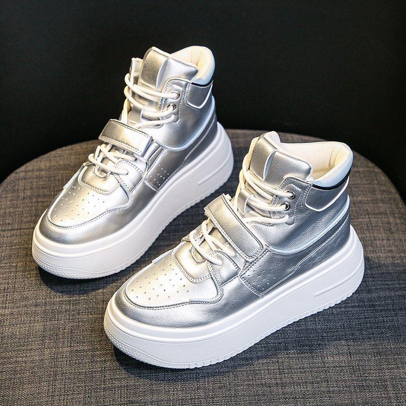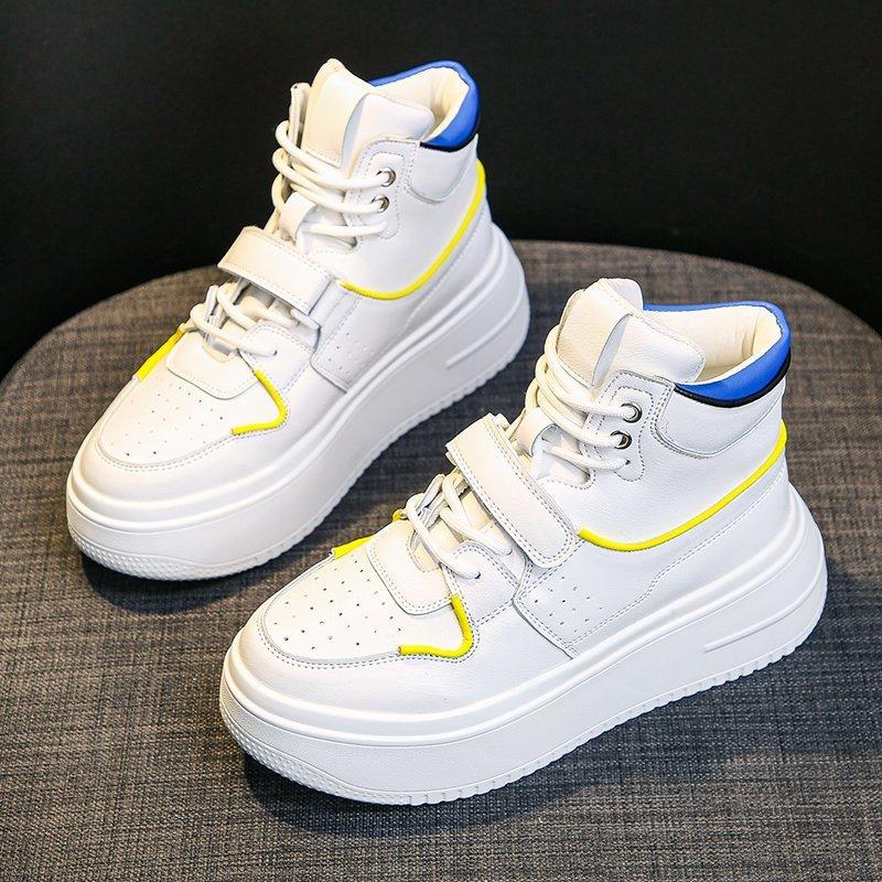 Высокие женские кроссовки, повседневные туфли на платформе, женская мода, осенние белые туфли с толстой подошвой, вулканизированные туфли, женские массивные кроссовки