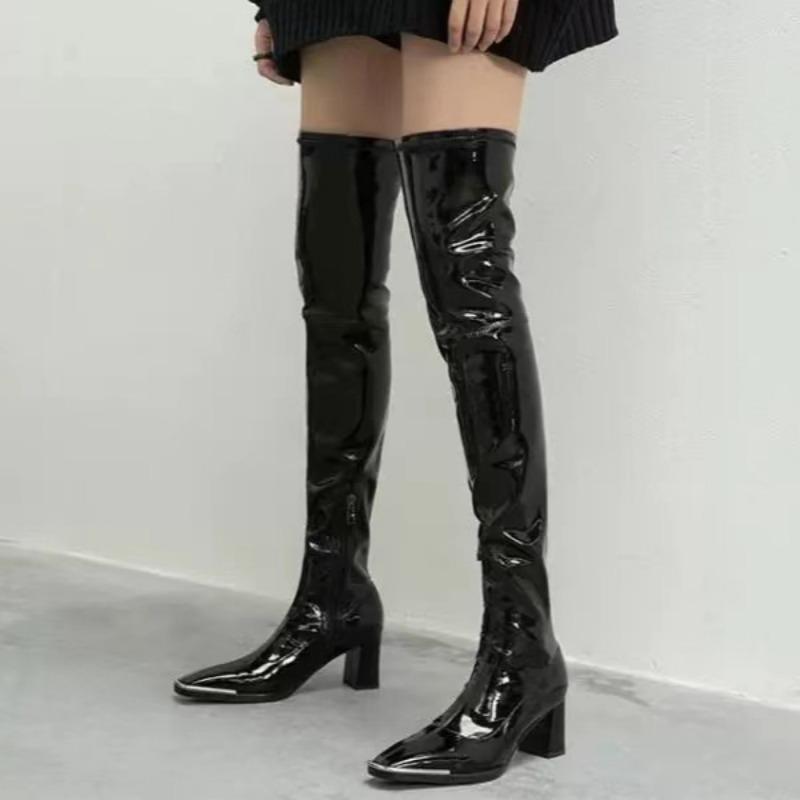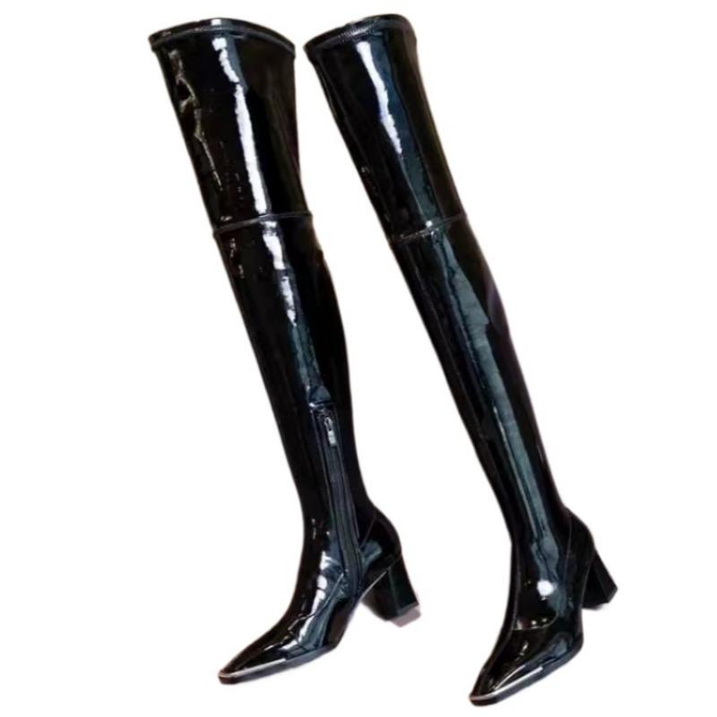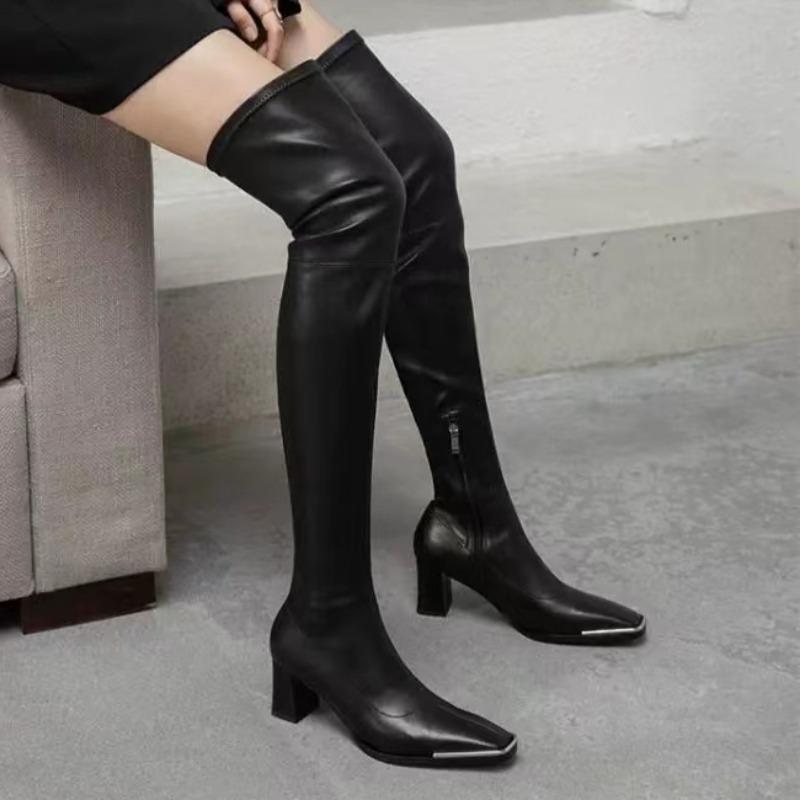 Женские туфли выше колена на высоком каблуке, высокие сапоги, модные туфли с квадратным носком, массивные туфли, женская зимняя тенденция 2025 года, туфли-лодочки «Челси» сексуальные Botas Mujer