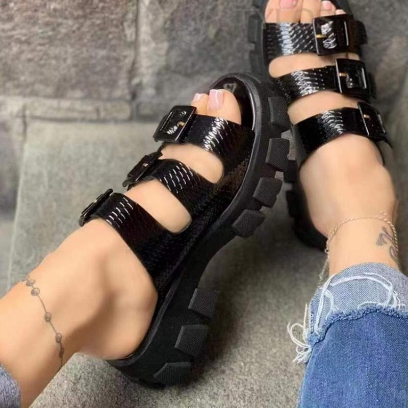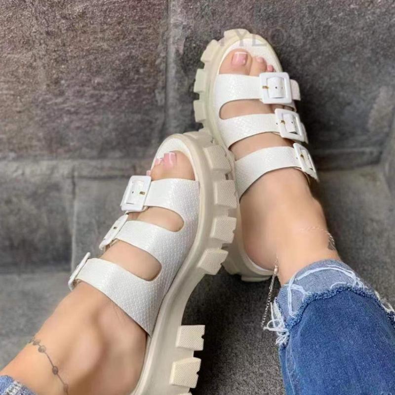 Женские босоножки на платформе, летние, новые римские босоножки с открытым носком и пряжкой, женские босоножки для активного отдыха, женская обувь больших размеров, повседневные женские босоножки