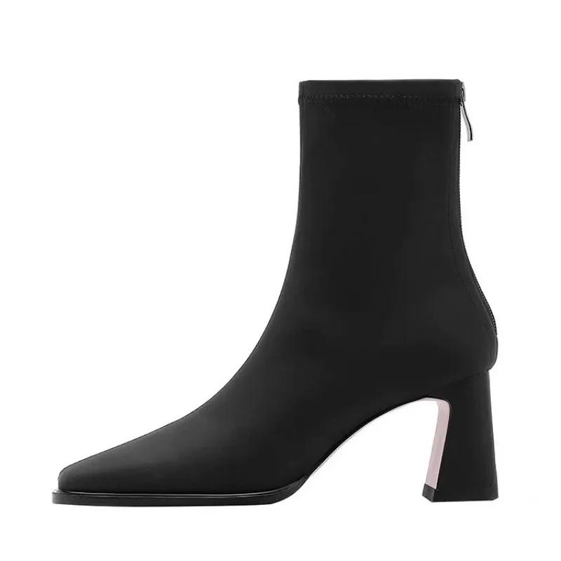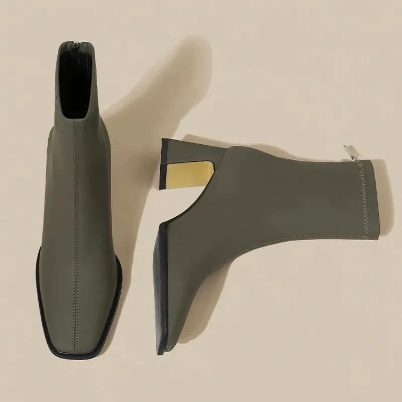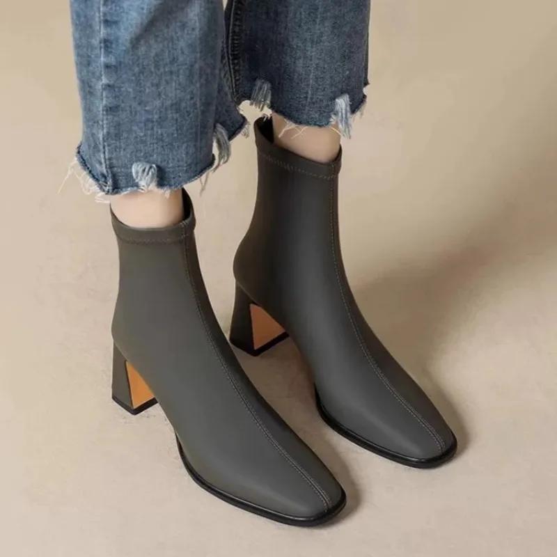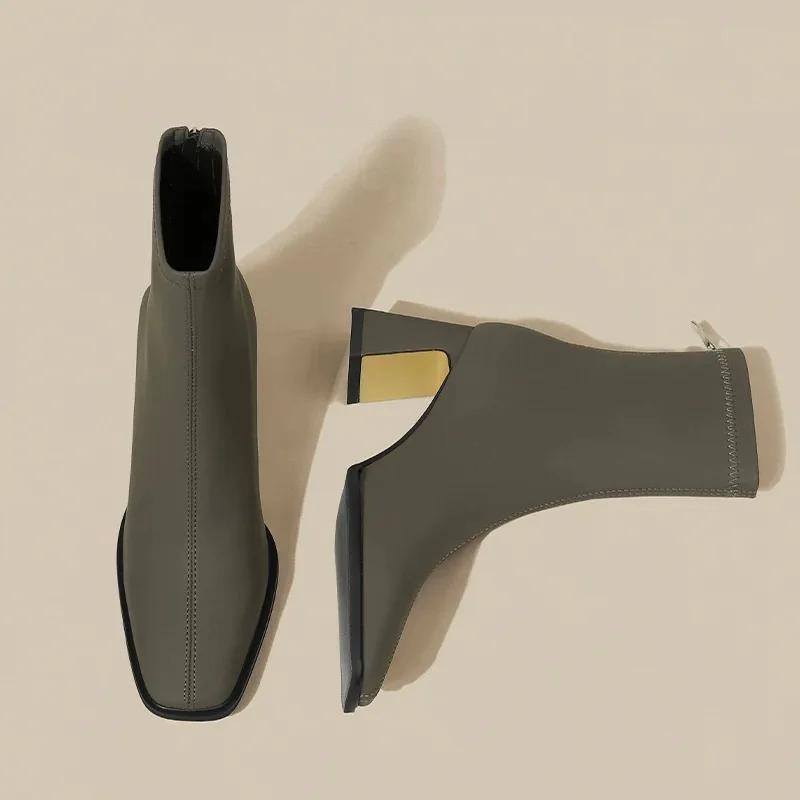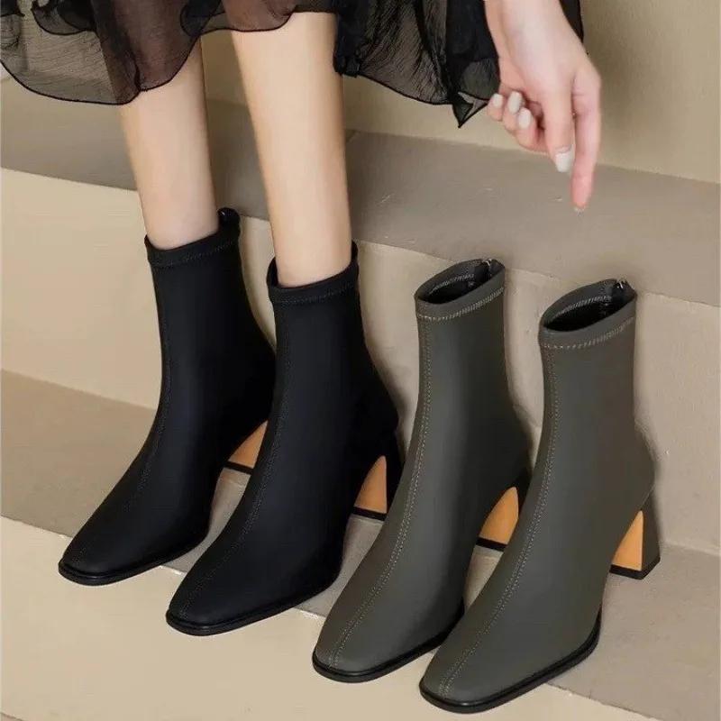 Высокие каблуки женские ботильоны элегантные массивные квадратные носки дизайнерская обувь женская зимняя тенденция вечернее платье туфли-лодочки модная обувь Botas Mujer