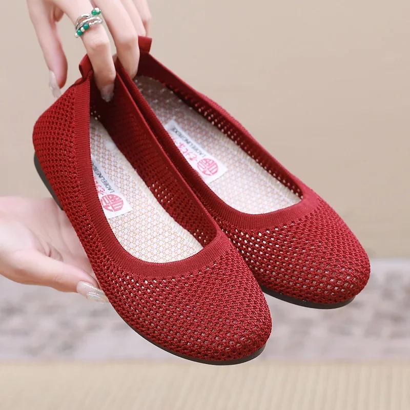 Женская обувь большого размера, модная сетчатая полые дышащие нескользящие повседневные туфли на мягкой подошве на плоской подошве для женщин, 2024 г.