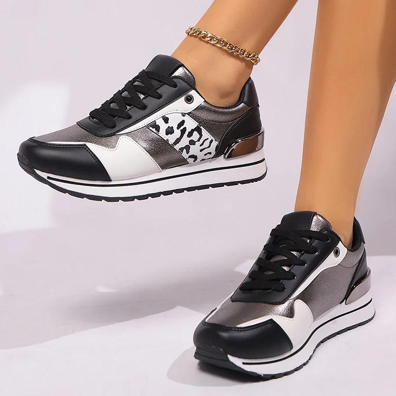 2025 Новые женские кроссовки на платформе с леопардовым принтом, разноцветные кроссовки на плоской подошве со шнуровкой, женские нескользящие повседневные кроссовки для бега