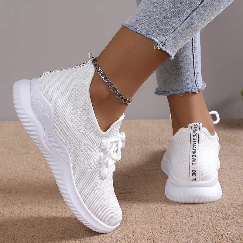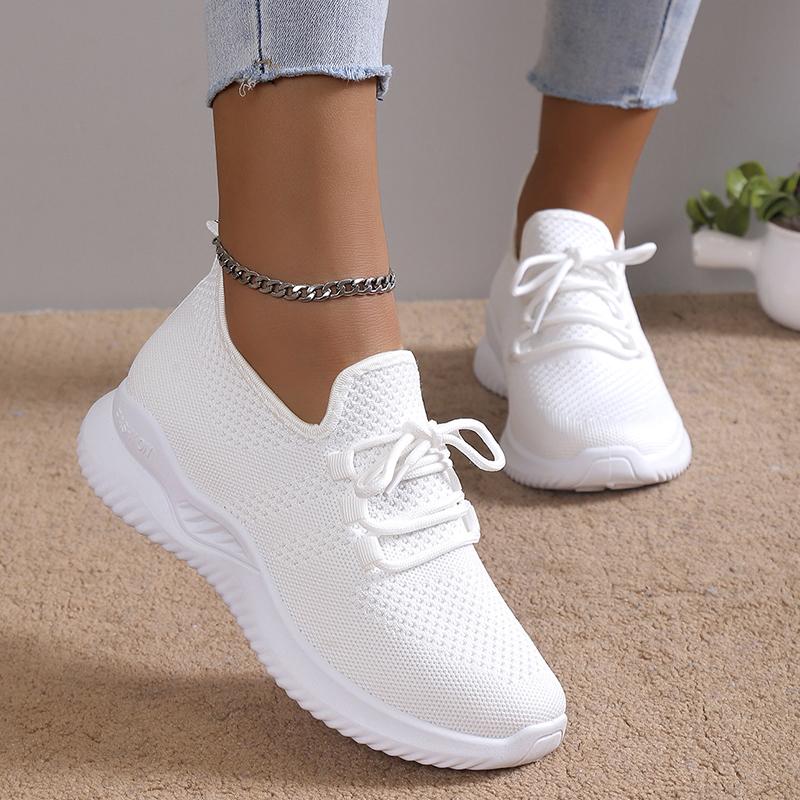 Белые кроссовки Lucyever на шнуровке для женщин 2024 года, осенняя дышащая трикотажная спортивная обувь, женские нескользящие носки с мягкой подошвой