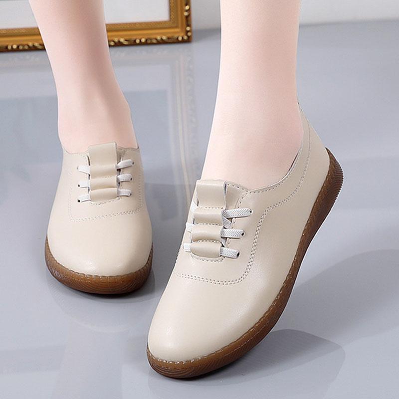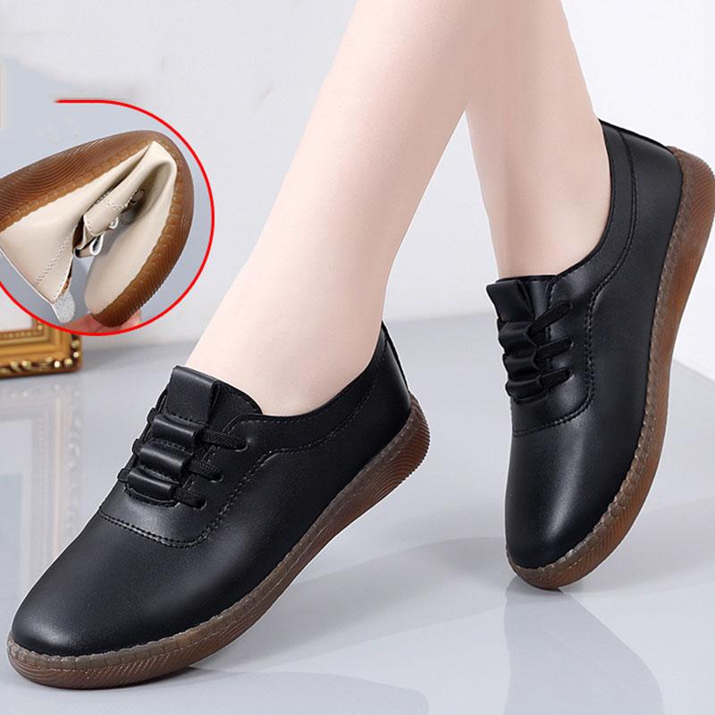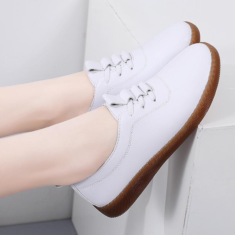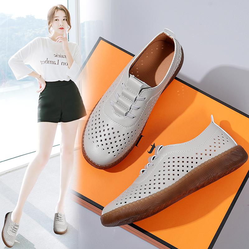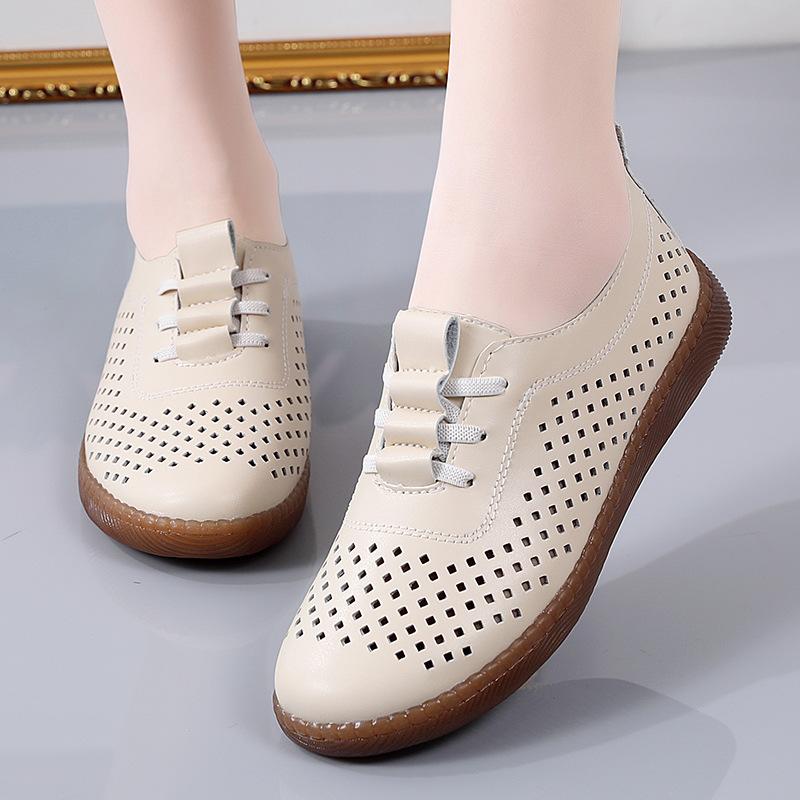 Мягкая подошва полые одинарные туфли женские 2024 винтажные кожаные низкие каблуки повседневные туфли женские уличные нескользящие мокасины на шнуровке