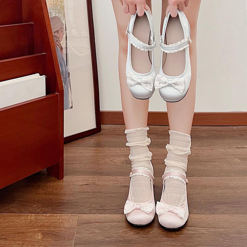 Новые женские туфли-лодочки женские балетки Мэри Джейн с лентой на толстом каблуке неглубокие босоножки женские туфли в стиле Лолиты с круглым носком милые удобные туфли с бантом