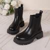 2024 Высококачественная обувь Женские ботинки на молнии Осень-зима Круглый носок Твердые короткие бочонки на низком каблуке Большие размеры Челси