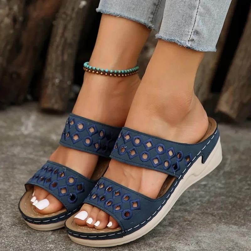 Женские сандалии 2024 года, новые летние женские туфли, удобные тапочки на мягкой подошве, модная обувь Hollow Zapatos Mujer — купить товар онлайн с бесплатной доставкой по всему миру!