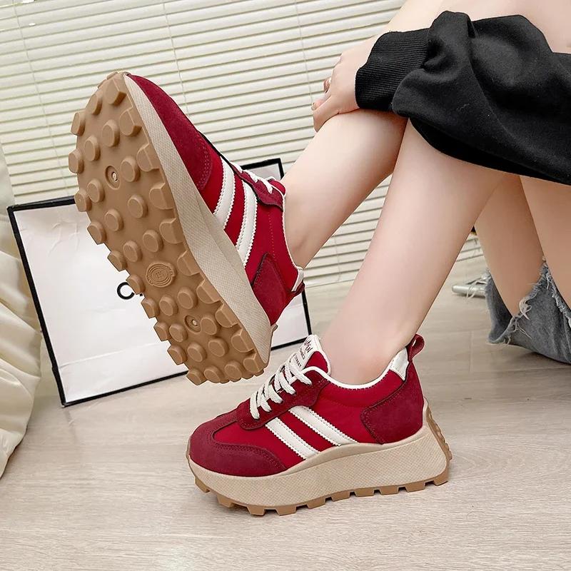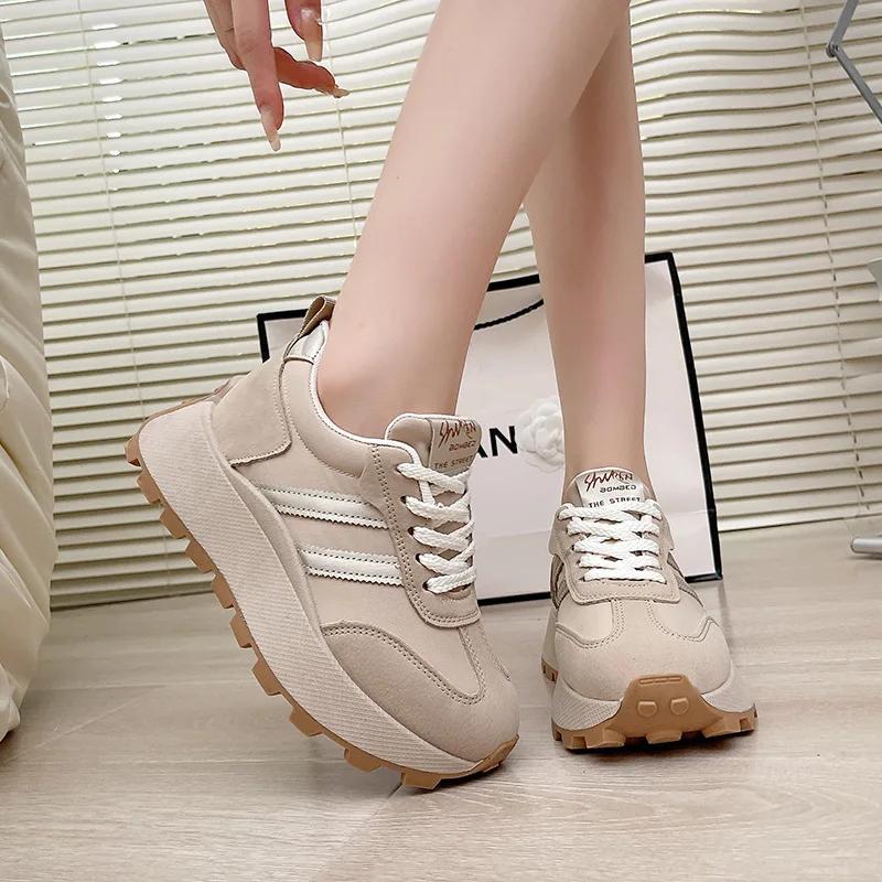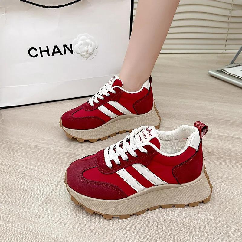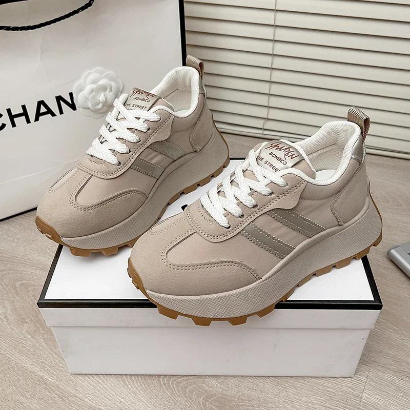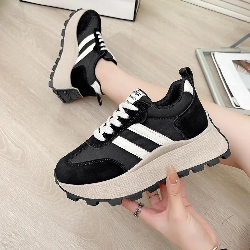 Женские кроссовки на толстой дышащей платформе со шнуровкой, удобные нескользящие кроссовки для папы, кроссовки для бега на открытом воздухе, женские кроссовки