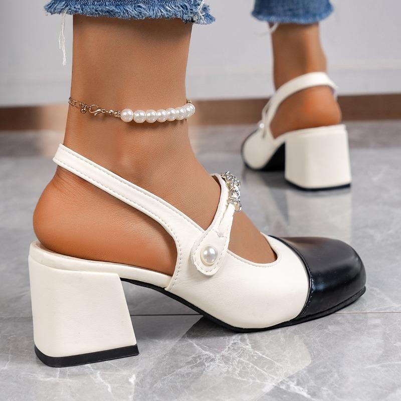 Новые женские классические разноцветные босоножки женские туфли Мэри Джейн с ремешком на пятке жемчужный пояс туфли на среднем каблуке женские офисные сандалии