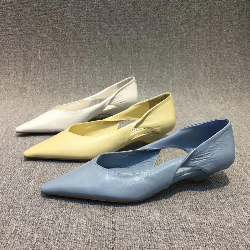 Новые туфли для женщин, удобные женские летние туфли, мокасины, синие, на низком каблуке, элегантные, с острым носком, высокого качества, популярные каблуки