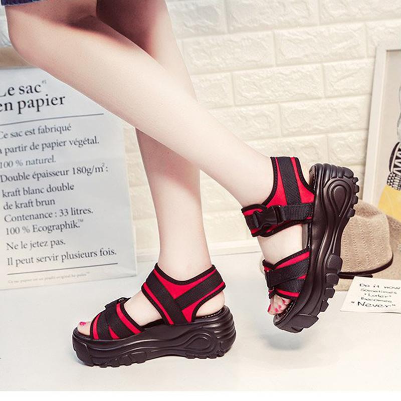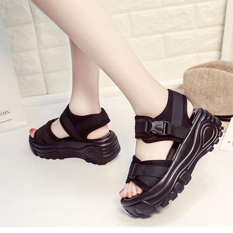 Летние сандалии Обувь Женская обувь Спортивные сандалии на платформе Летние кроссовки Толстая подошва Танкетка Платформа Спортивные повседневные римские сандалии