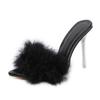 Maogu Stiletto Peep Toe Mules Lady Slides Shoes Transparent Cabolt Summer Sexy Feather Woman Slippers Perspex High Heels Zapatos
