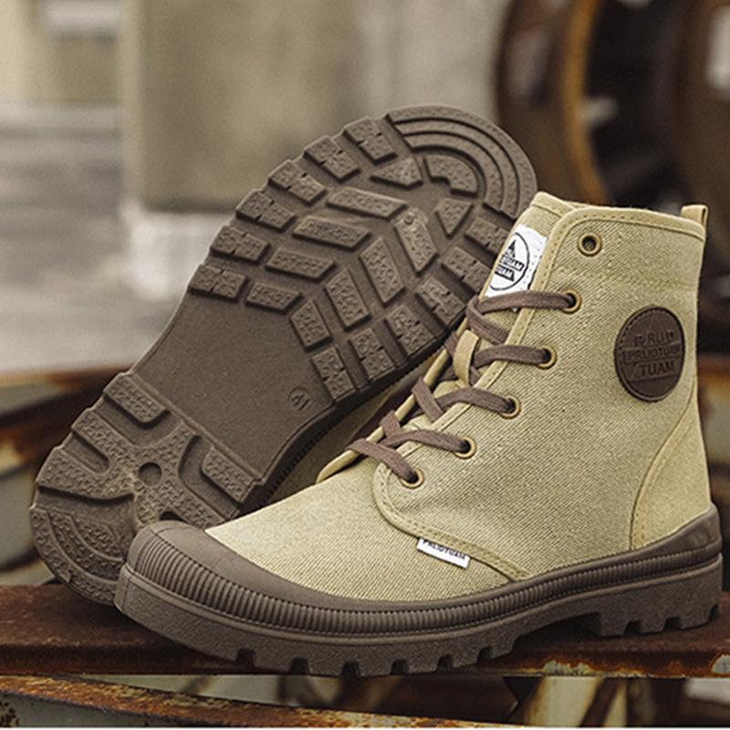 Парусиновые туфли Мужские ботинки для отдыха Высокие ботинки на плоской подошве Мужские ботинки в стиле милитари Парная обувь Повседневные ботинки на весну и осень
