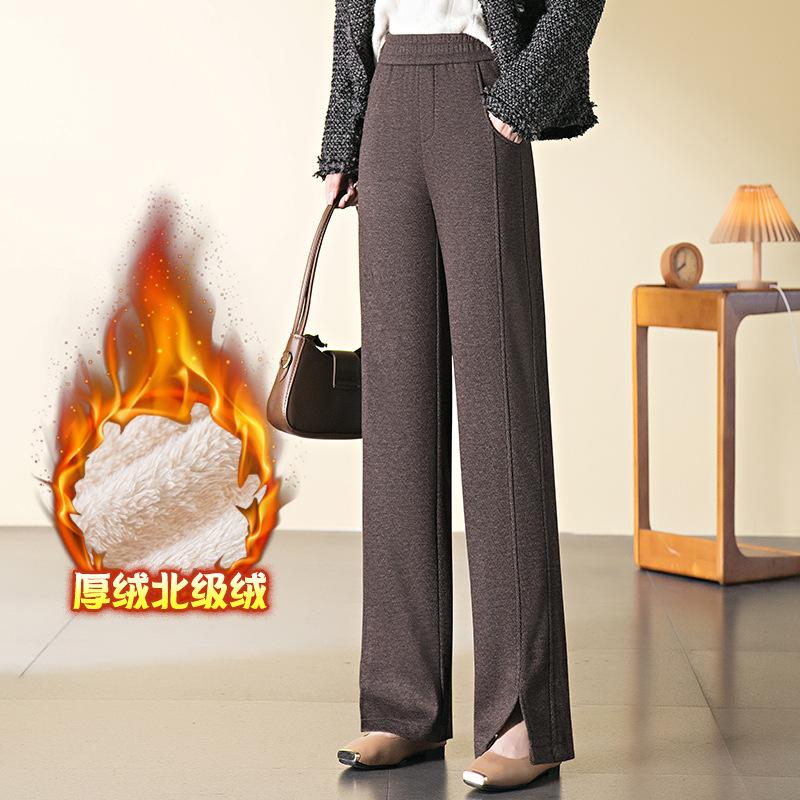 Шерстяные прямые узкие брюки с широкими штанинами женские флисовые утолщенные зимние новые тонкие повседневные брюки с эластичной талией